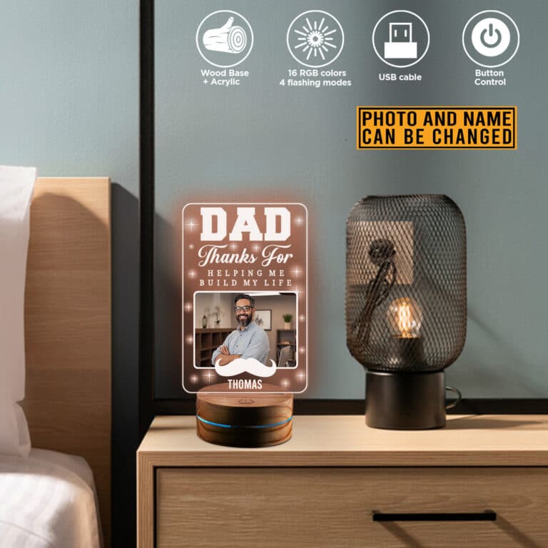 At CubeBik, besides 2D Night Light, we also offer tees, hoodies, sweaters, raglans, tanks, wall arts, canvases, posters, mugs, blankets, engraved jewelry, personalized necklaces, printed face masks, throw pillows, tote bags, hats, accessories and more on our website, so do not miss our other Dad Thanks For Helping Me Build My Life, Father’s Day Gifts from Daughter, Father to Be Gifts, Fathers Day Gifts, Father’s Day Gift for Uncle, 1st Father’s Day Gift, Father Christmas Gifts, Father S Day Gifts from Wife, Father of The Bride Gifts, Father Birthday Gift, Father Daughter Shirts, Father of The Groom Gifts from Son, Like Father Like Daughter Shirt, Gifts for Dad from Daughter, Gifts for Dad Who Wants Nothing, Best Dad Ever Gifts, First Time Dad Gifts, Gifts for The New Dad related merchandise. Moreover, all the products are made-to-order and one of a kind custom designs you can’t get elsewhere in normal stores. Let’s discover CubeBik.com now and find your favorite personalized items. We can’t wait to surprise and build beautiful memories with you and your loved ones.