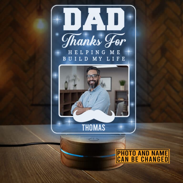 Let’s Shop Personalized Photo Fathers Day Gifts Dad Thanks For Helping Me Build My Life Led Night Light Multi Color – Bedroom Decor!