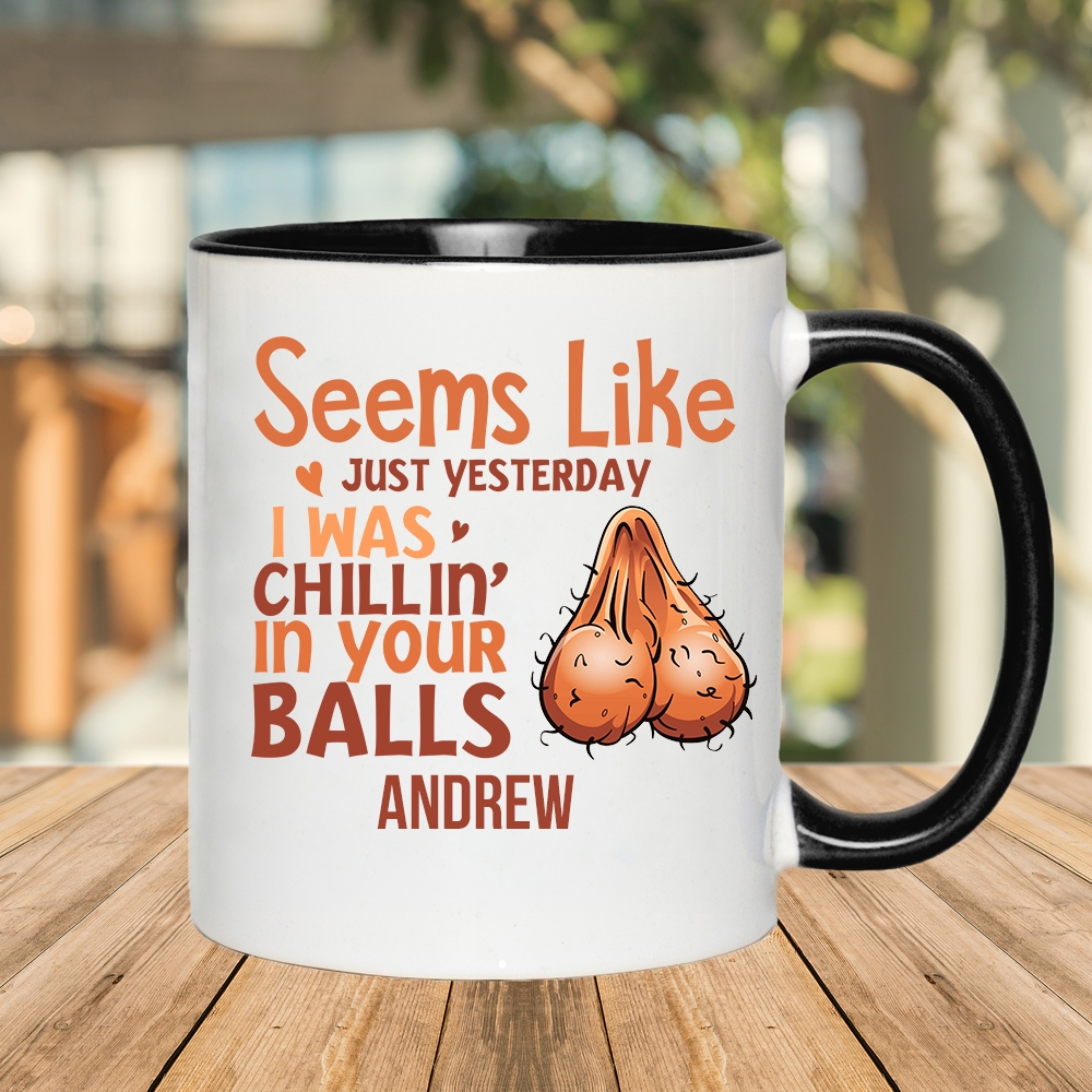 Shop Personalized Seems Like Just Yesterday I Was Chillin in Your Balls Accent Mug.