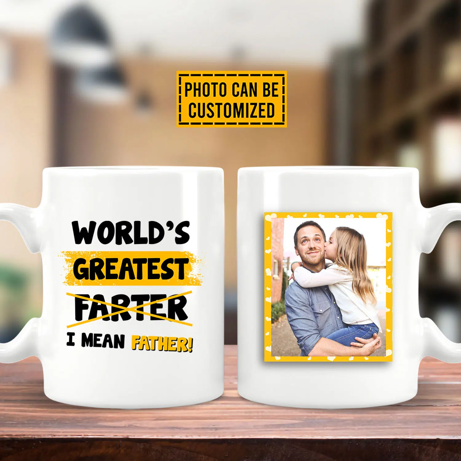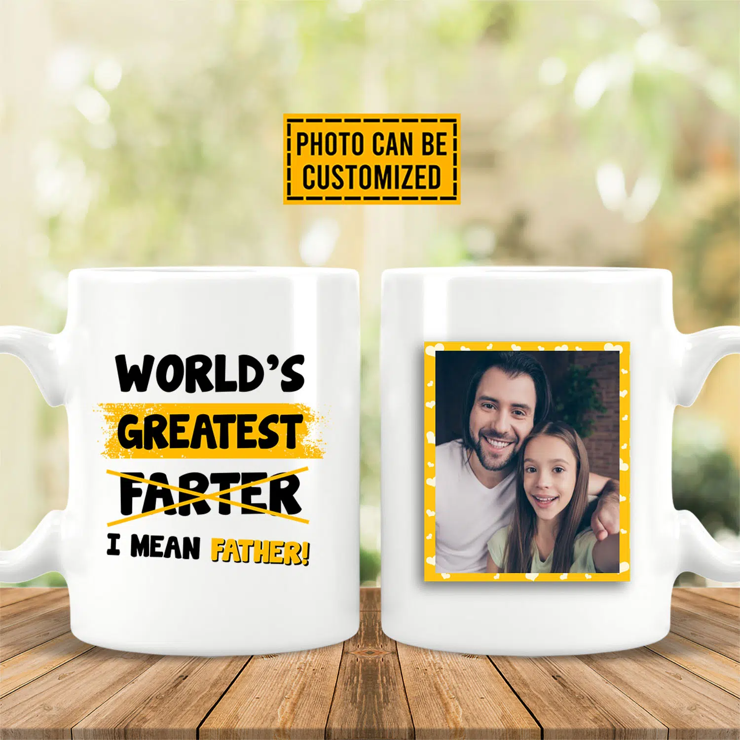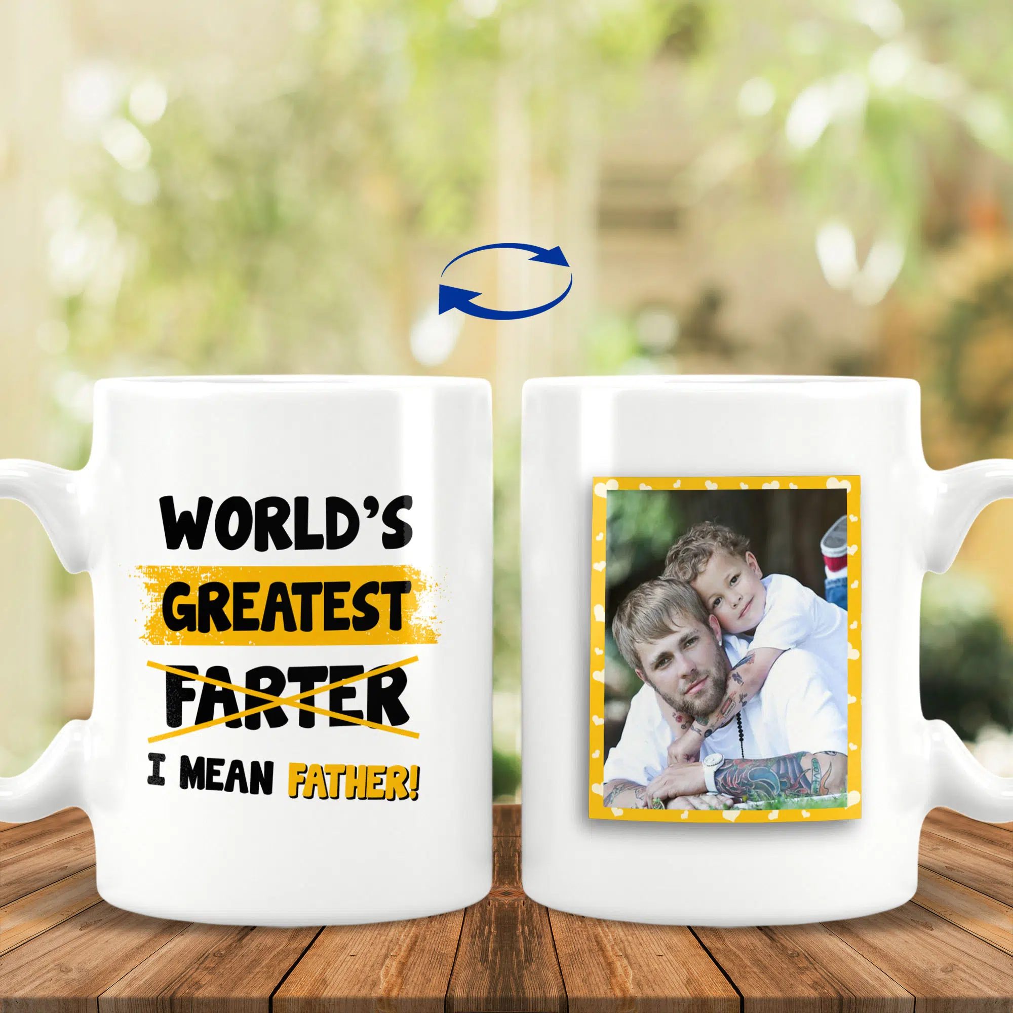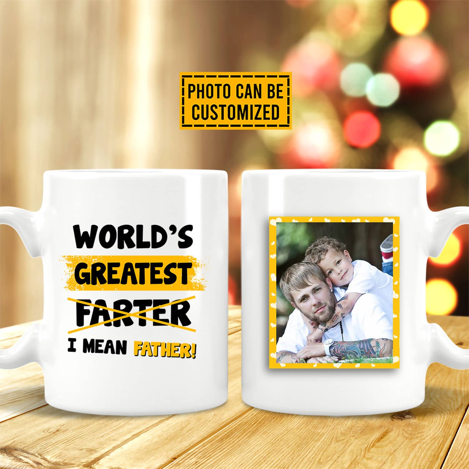 Let’s Shop Personalized Photo World’s Greatest Farter I Mean Father Print On 2 Sides Ceramic Coffee Mug!