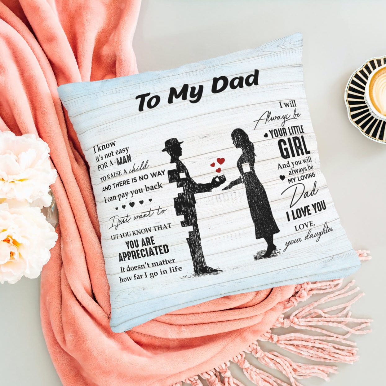 Let’s Shop Daughter To My Dad I Know It’s Not Easy for A Man to Raise a Child Throw Pillow – Decorative Pillow!