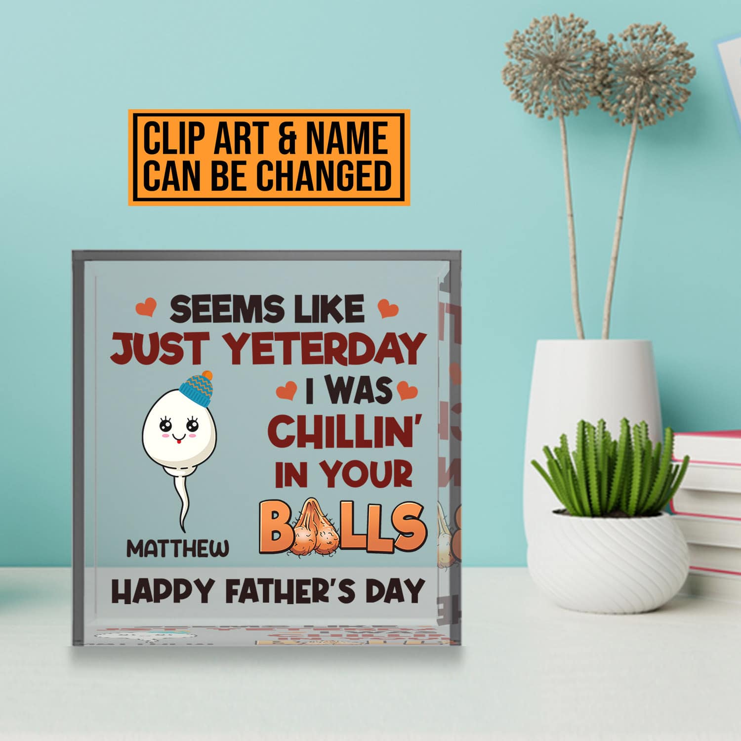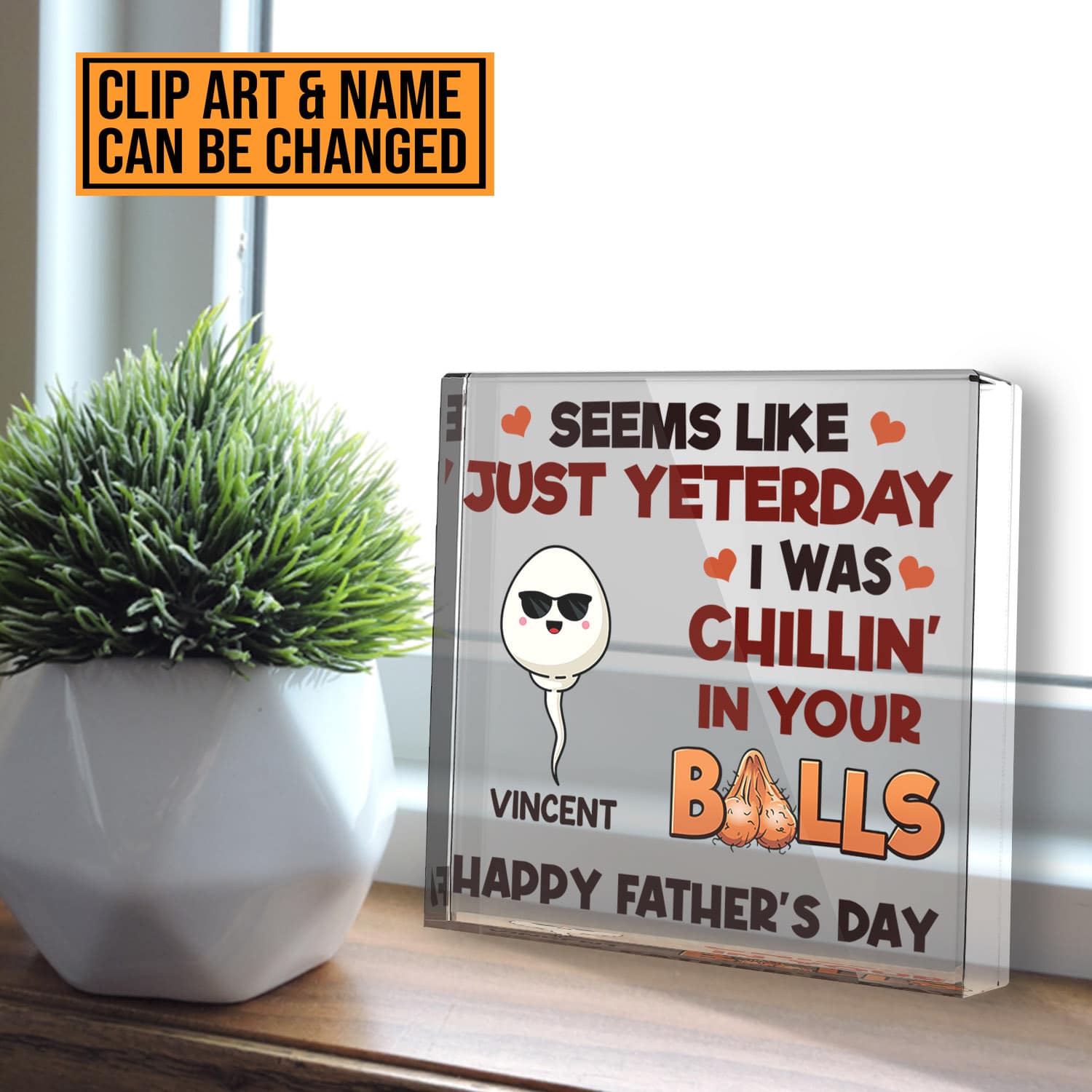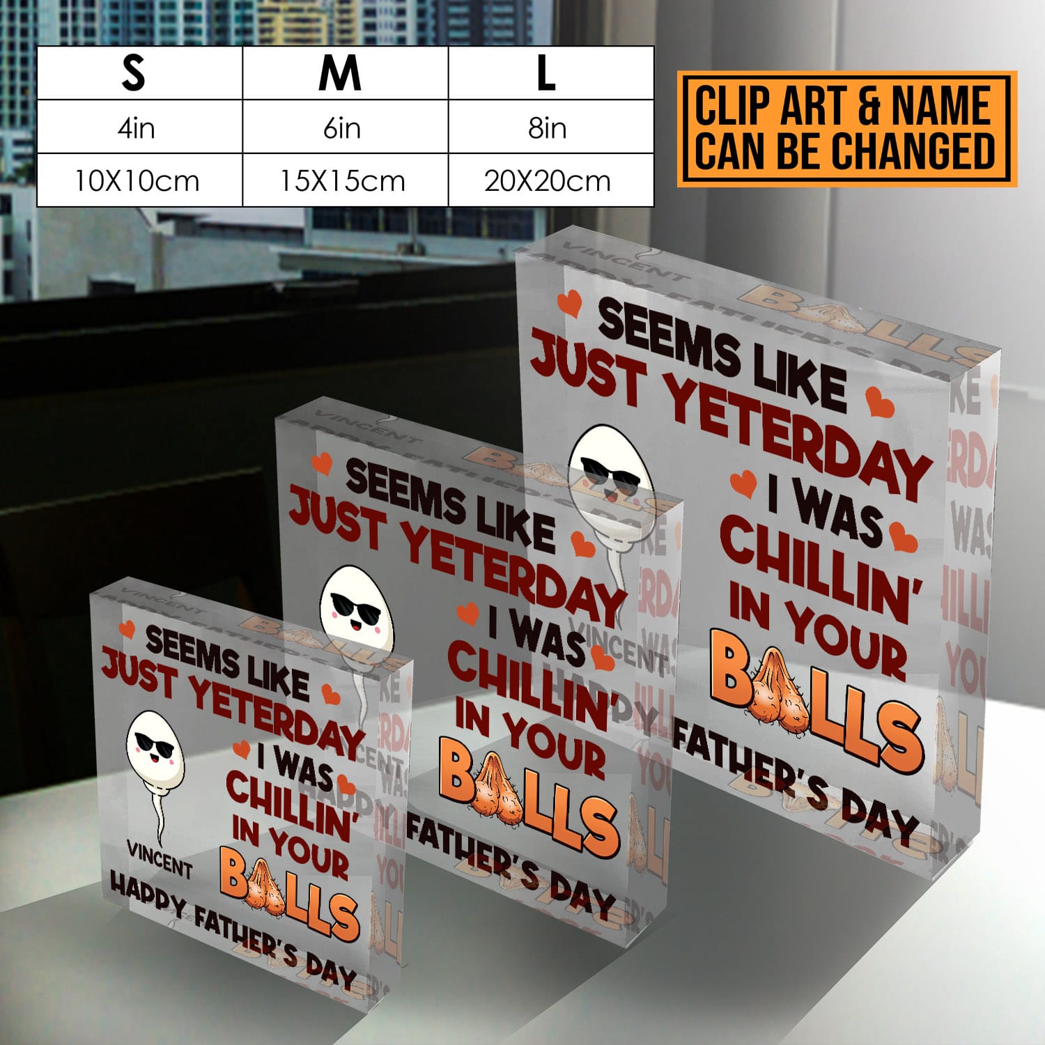 Let’s Shop Personalized Seems Like Just Yesterday I Was Chillin’ In Your Balls Funny Father’s Day Square Acrylic Plaque!