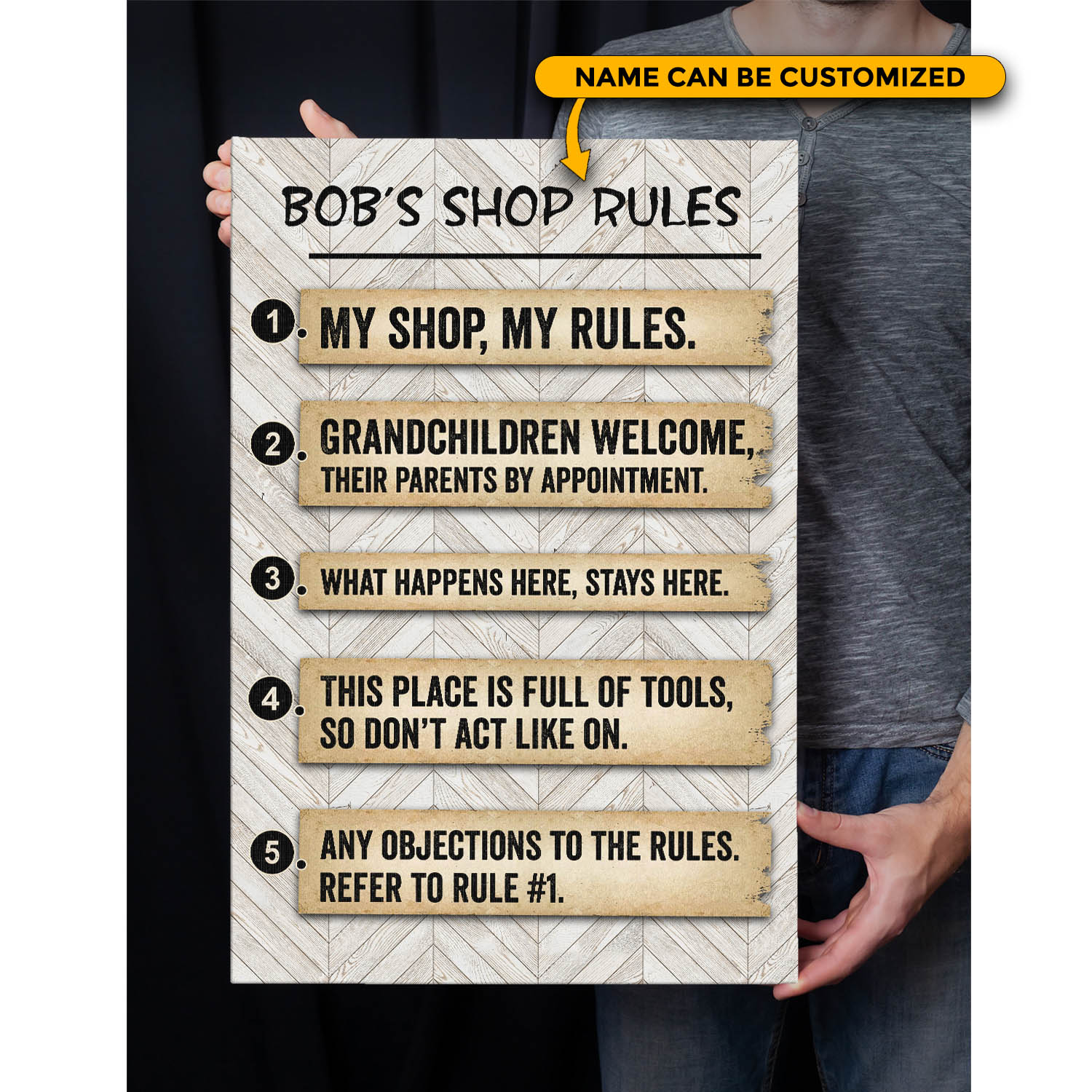 Let’s Shop Personalized Papa’s Shop Rules My Shop My Rules Grandchildren Welcome Framed Canvas – Unframed Poster!
