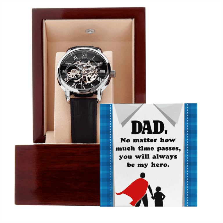 Let’s Shop Dad No Matter How Much Time Passes You Will Always Be My Hero Men’s Openwork Watch – Message Card Watch For Dad!