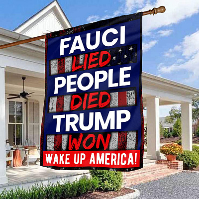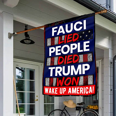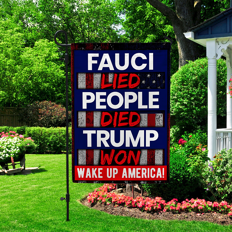 Let’s Shop Fauci Lied People Died Trump Won Wake Up America Garden Flag – House Flag – Trump Won Flag Save America!