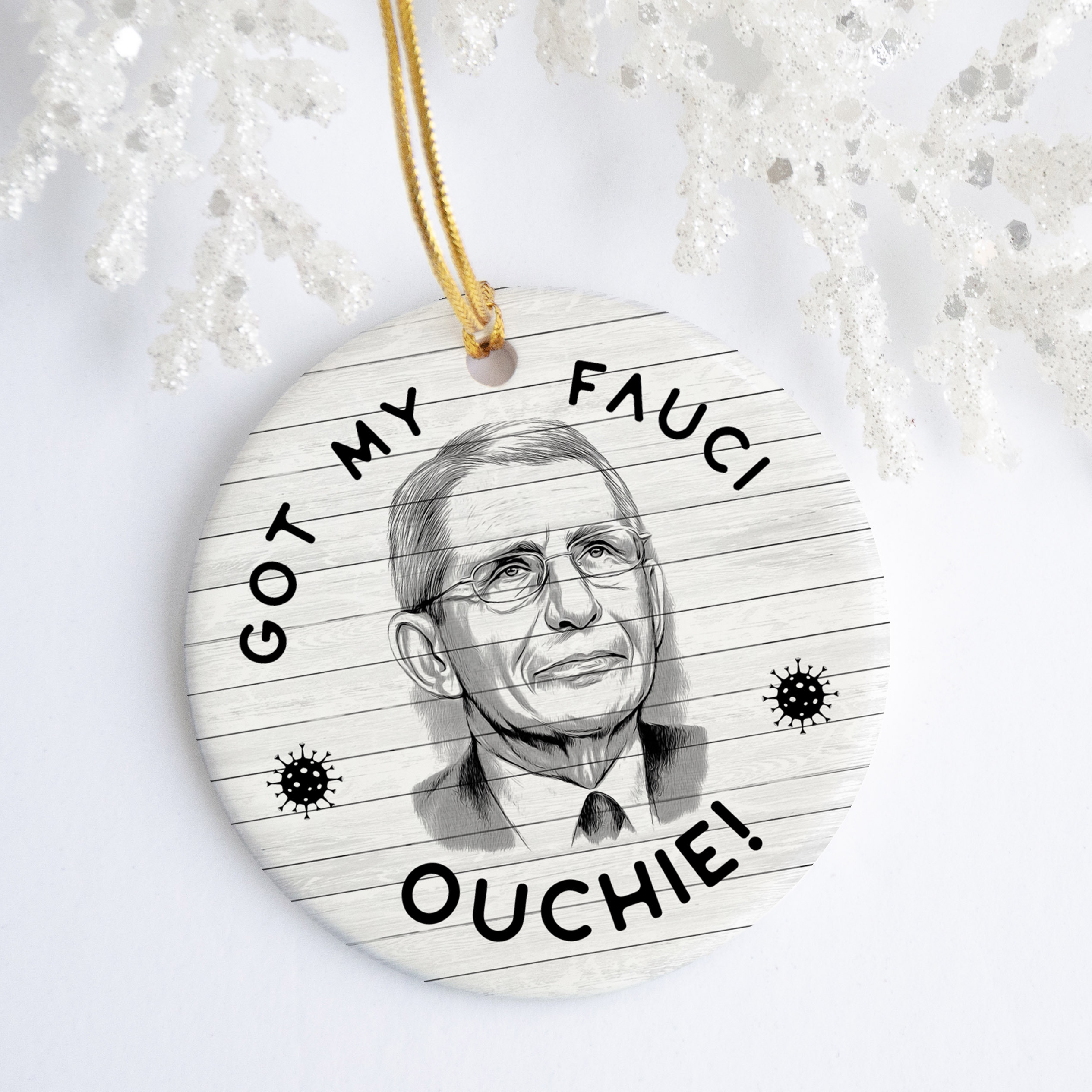 Let’s Shop Funny Got My Fauci Ouchie Team Dr Fauci Pro Vaccine Decorative Ornament – Holiday Flat Circle Ornament!
