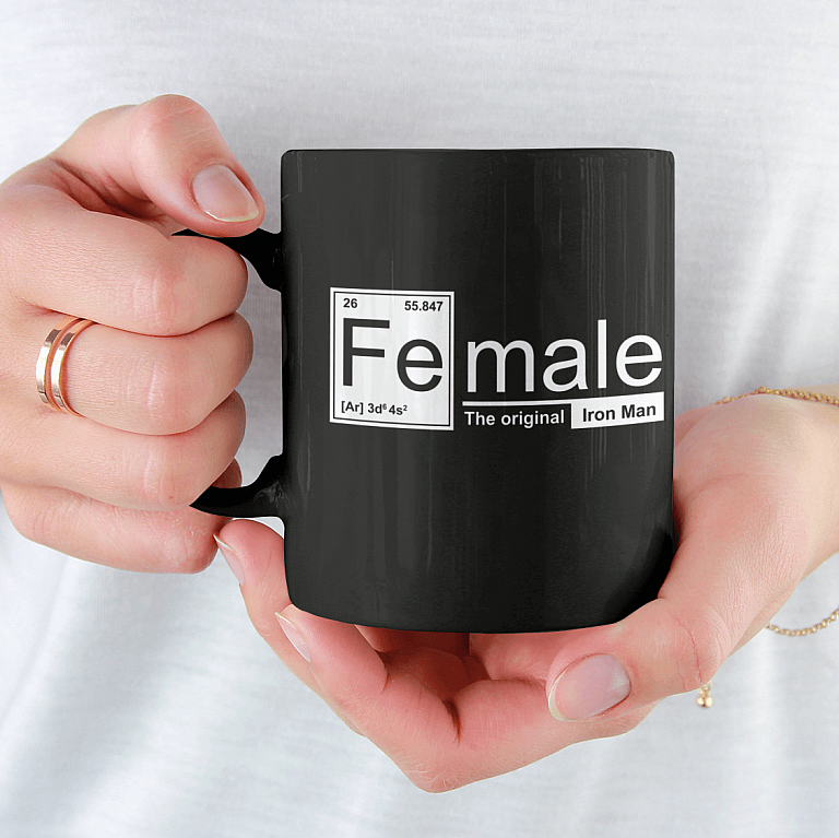 Let’s Shop Female The Original Iron Man Ceramic Coffee Mug – Fe(male) Mug – Funny Chemistry Element Feminism Mug!