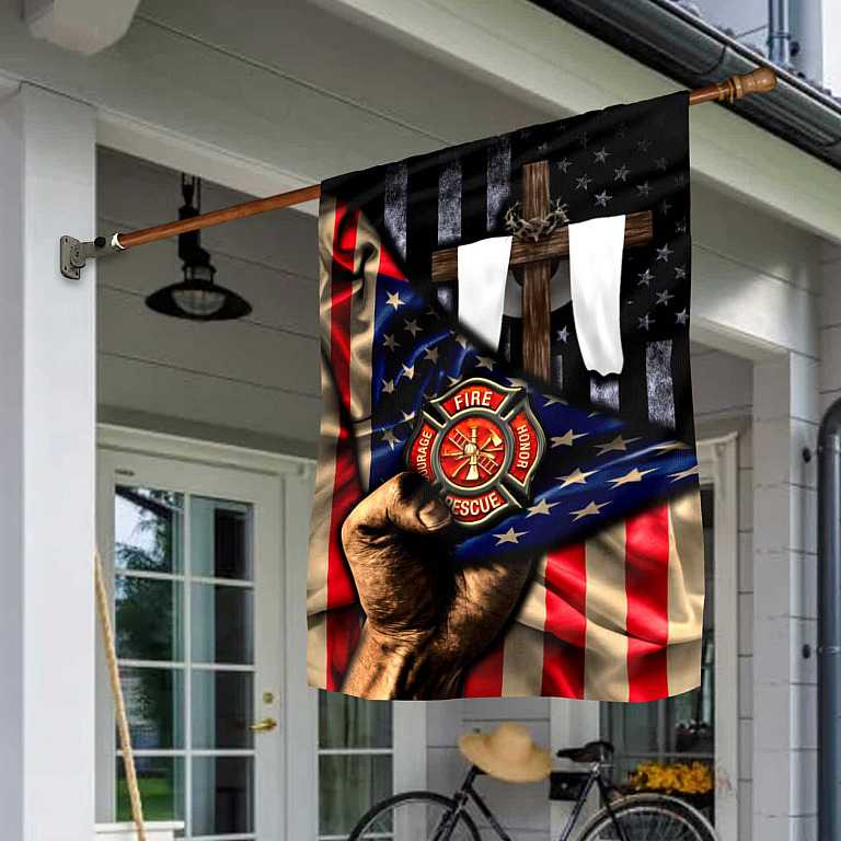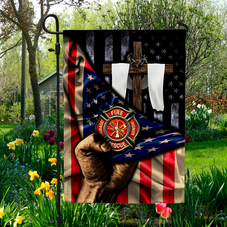 Let’s Shop Christian Cross Fire Department Garden Flag – House Flag – Wall Flag – Firefighter Axe Flag!