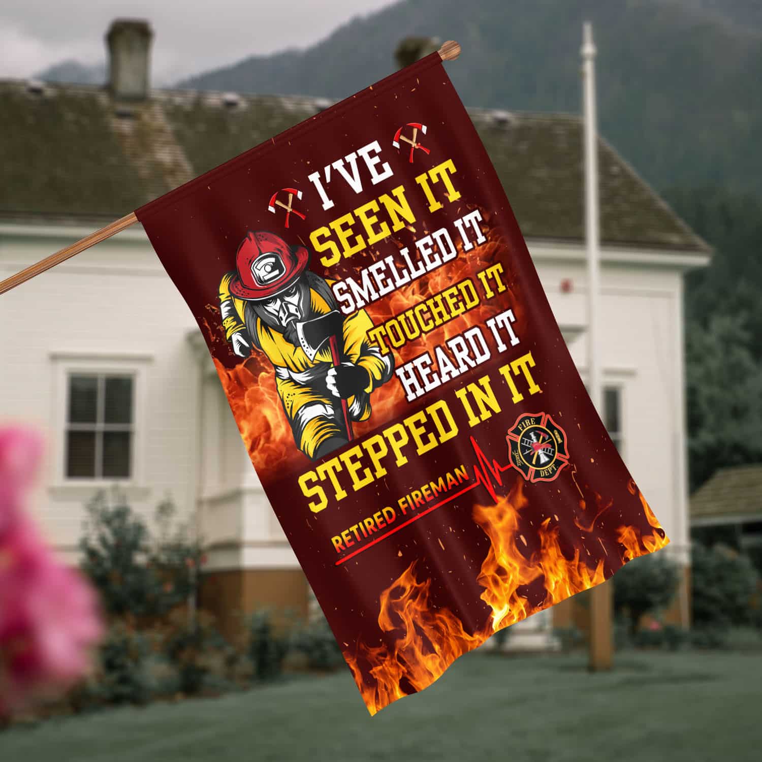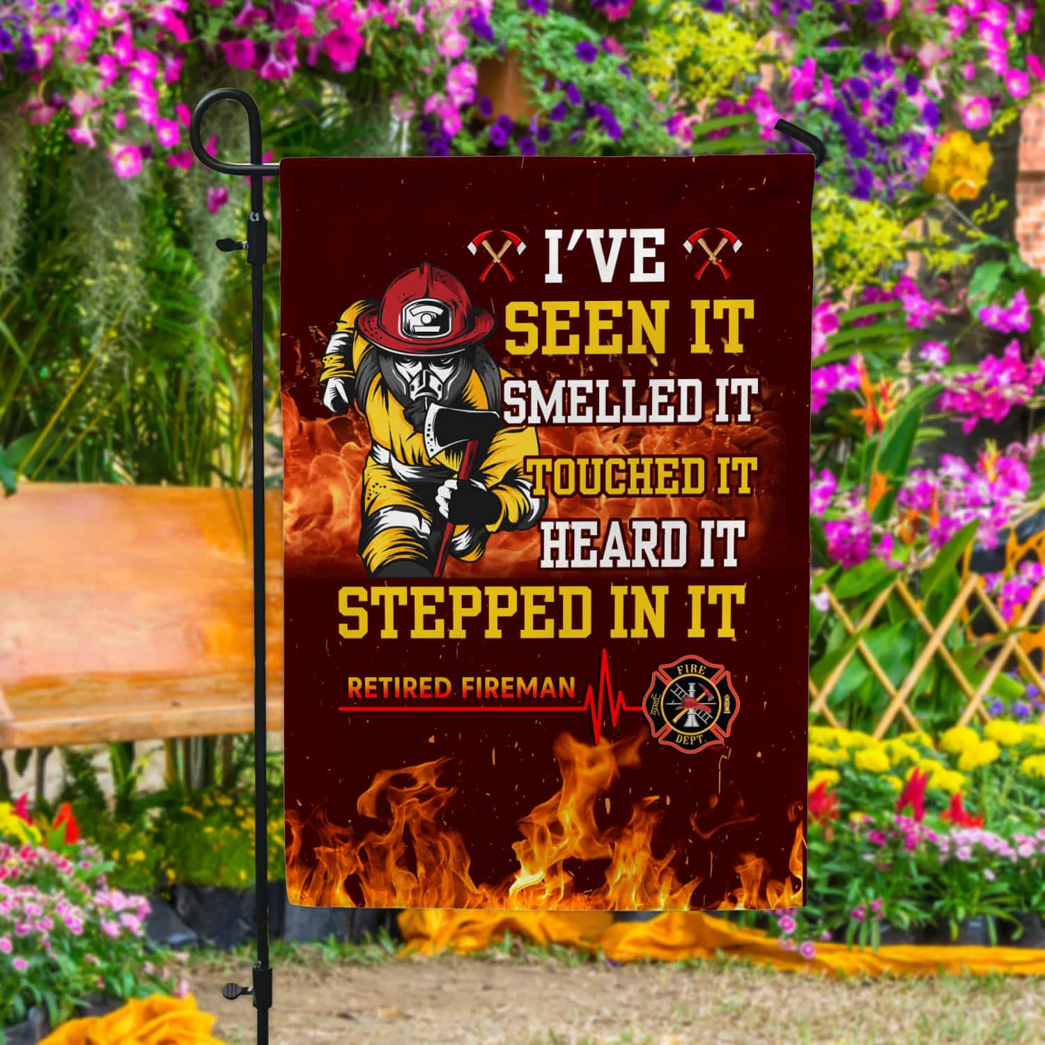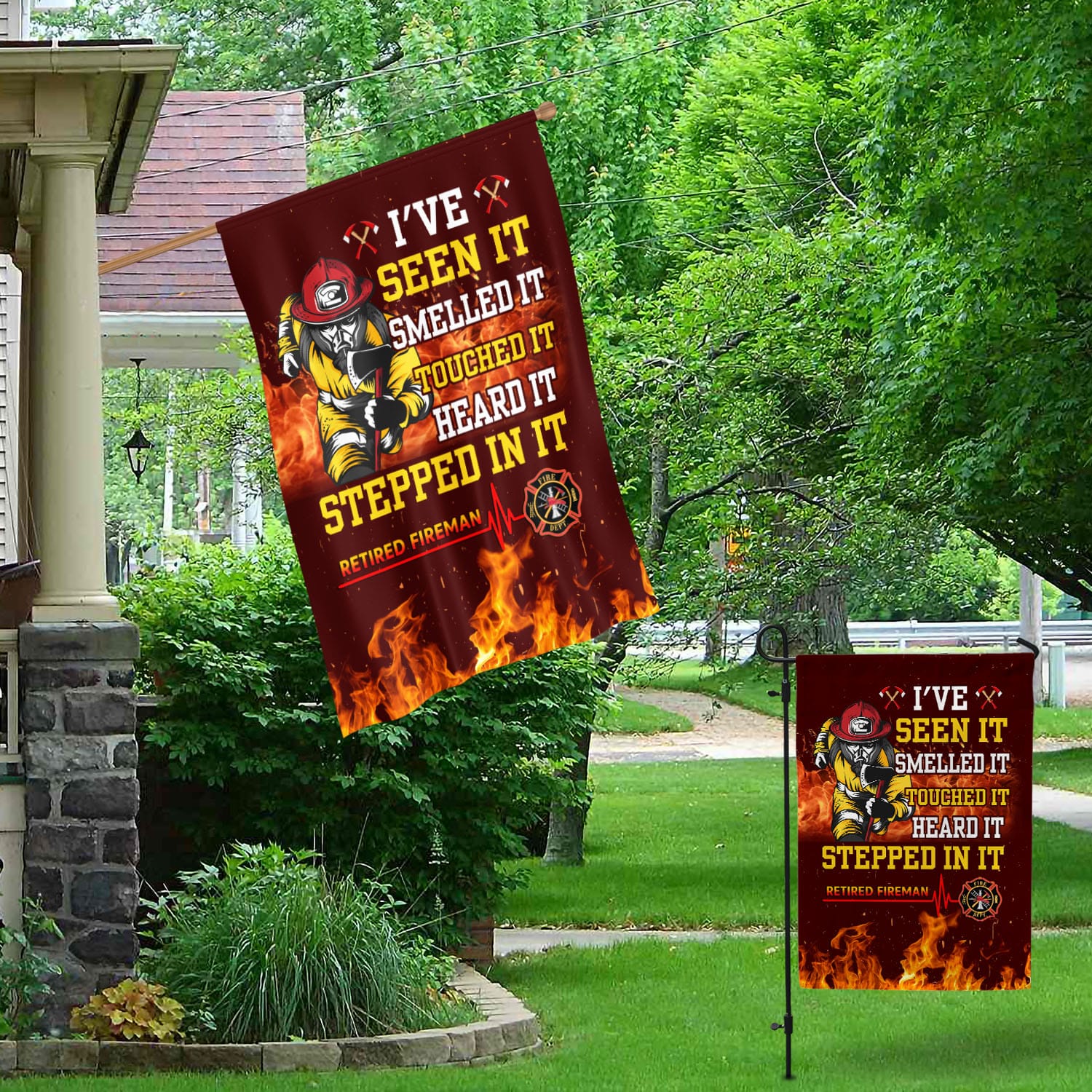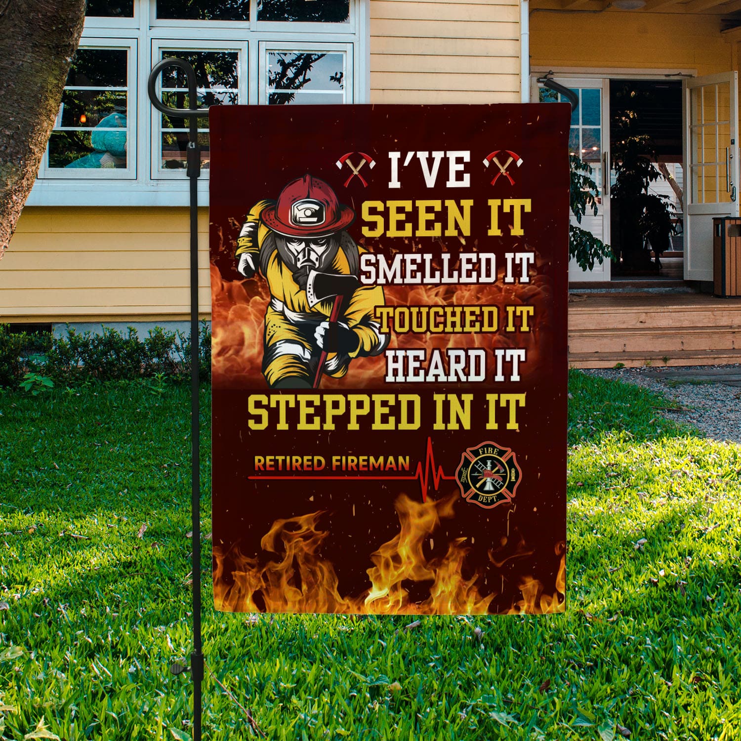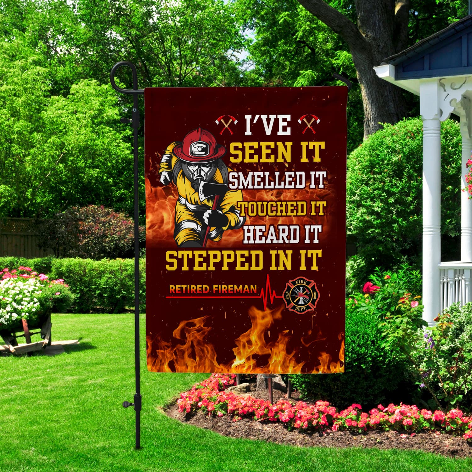 Let’s Shop I’ve Seen It Smelled It Touched It Heard It Stepped In It Retired Fireman Outdoor House Flag – Home Garden Flag!