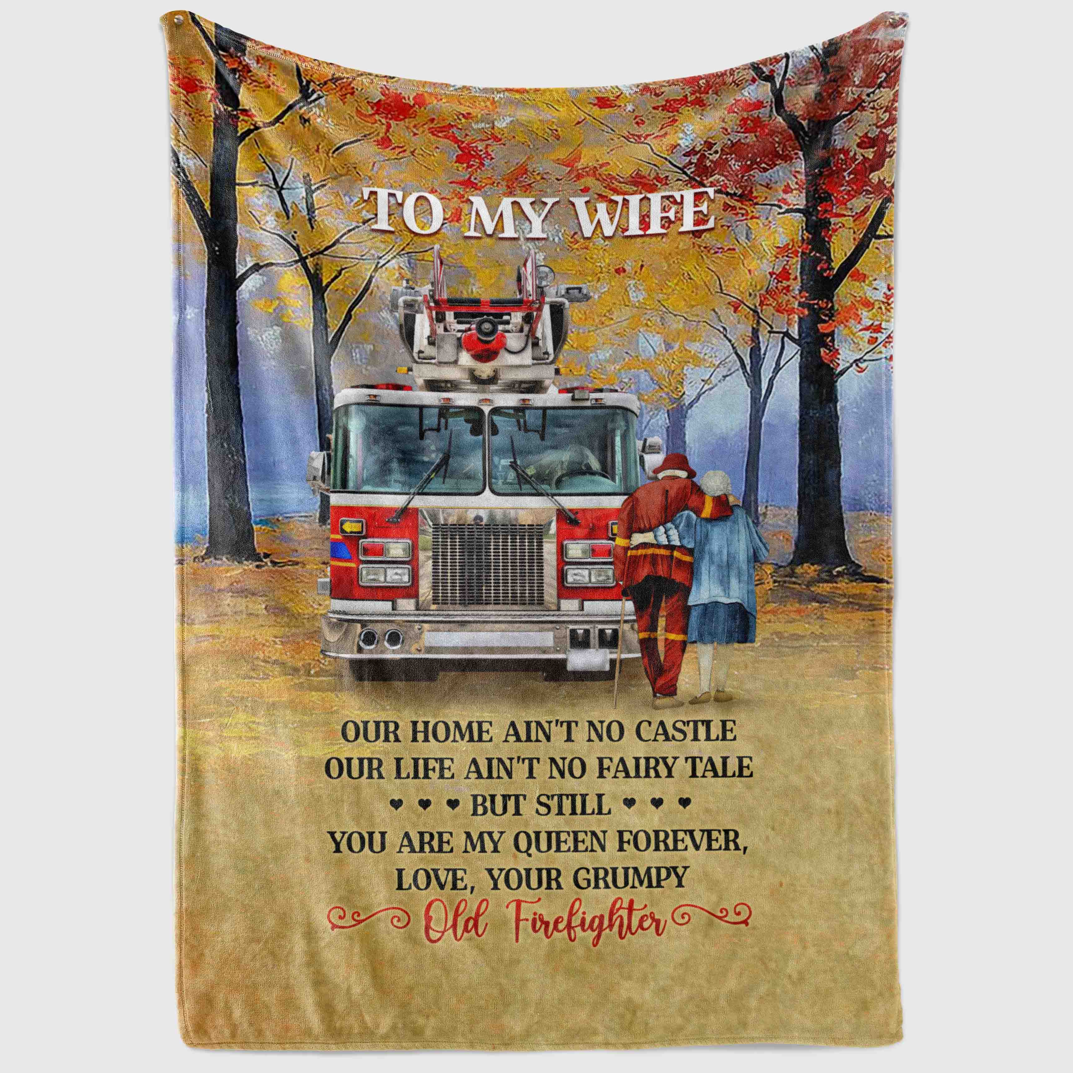 Shop From Firefighter To My Wife Our Home Ain’t No Castle Fleece Blanket – Premium Sherpa Blanket – Woven Blanket.