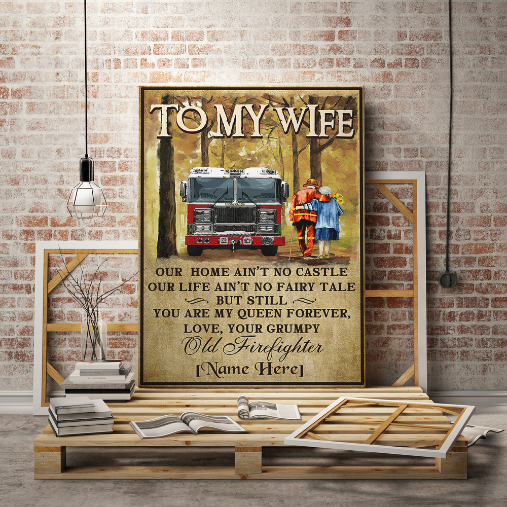 Shop Personalized Old Firefighter to My Wife Our Home Ain’t No Castle Framed Canvas Prints – Unframed Poster.