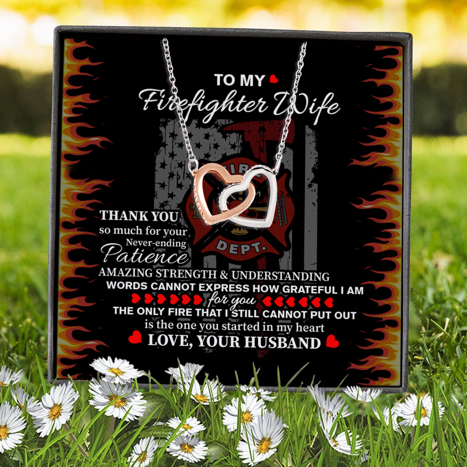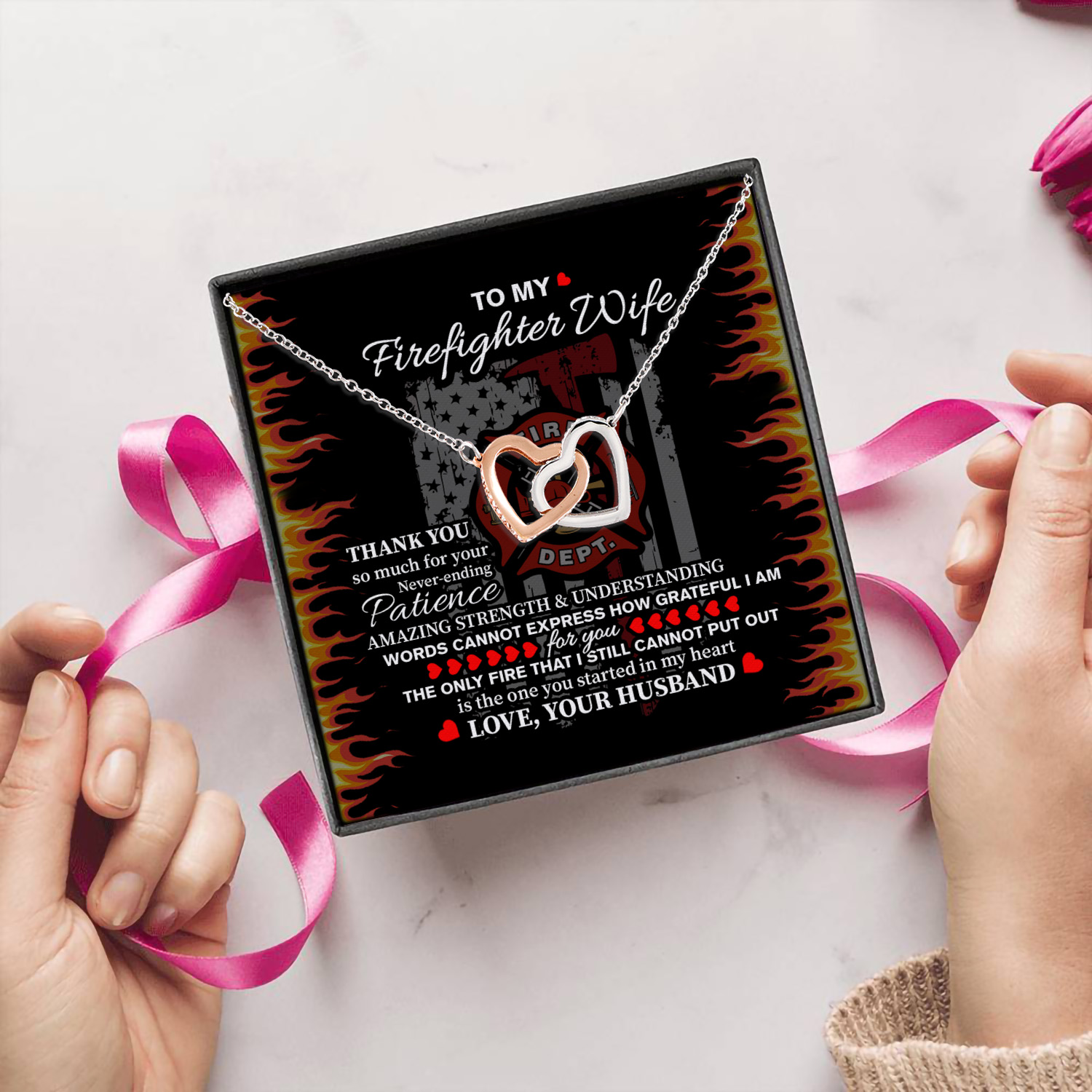 Let’s Shop To My Firefighter Wife Thank You So Much For Your Never-Ending Patience Interlocking Hearts Pendant Necklace!