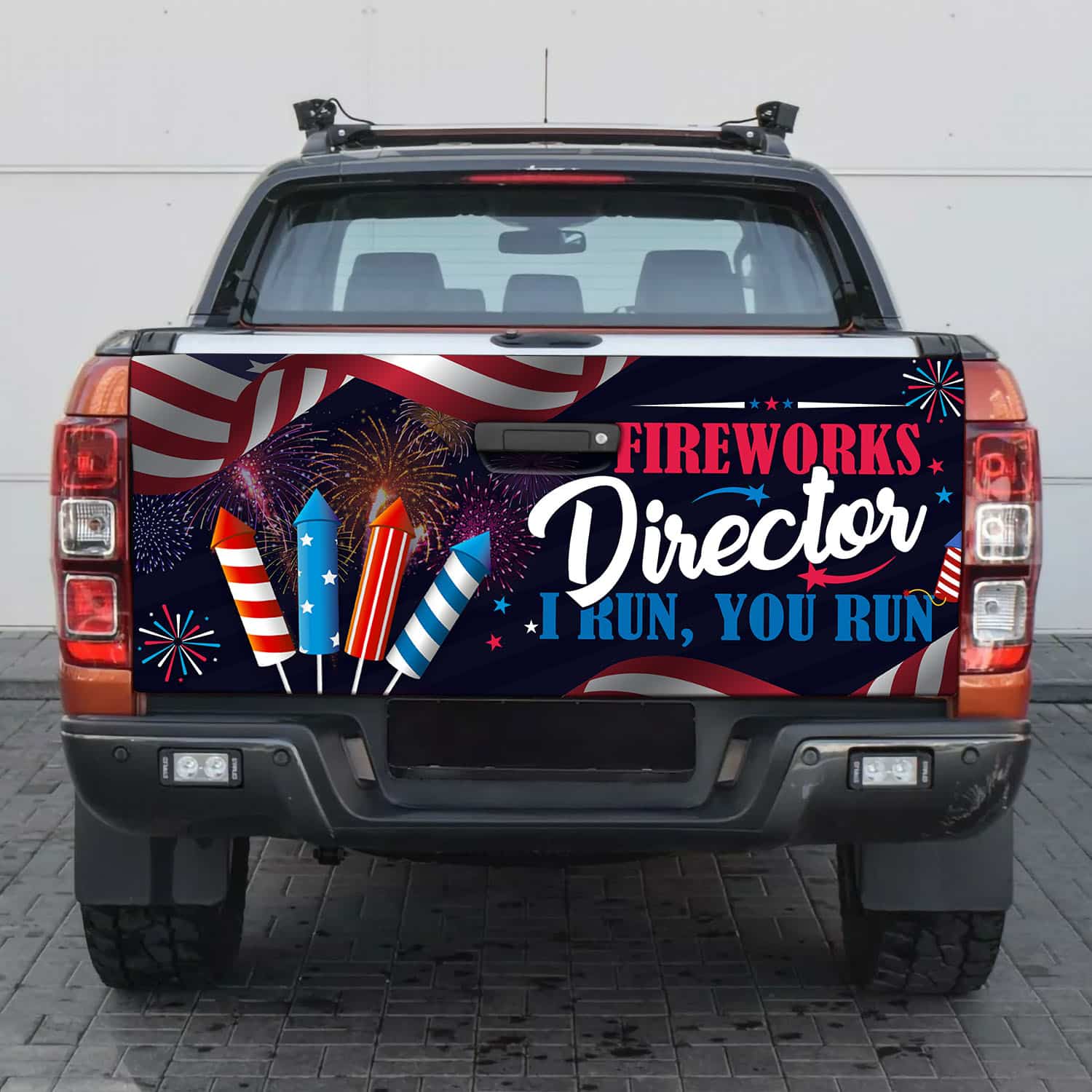 Let’s Shop Fireworks Director I Run You Run Funny 4th Of July Truck Tailgate Decal Sticker Wrap!