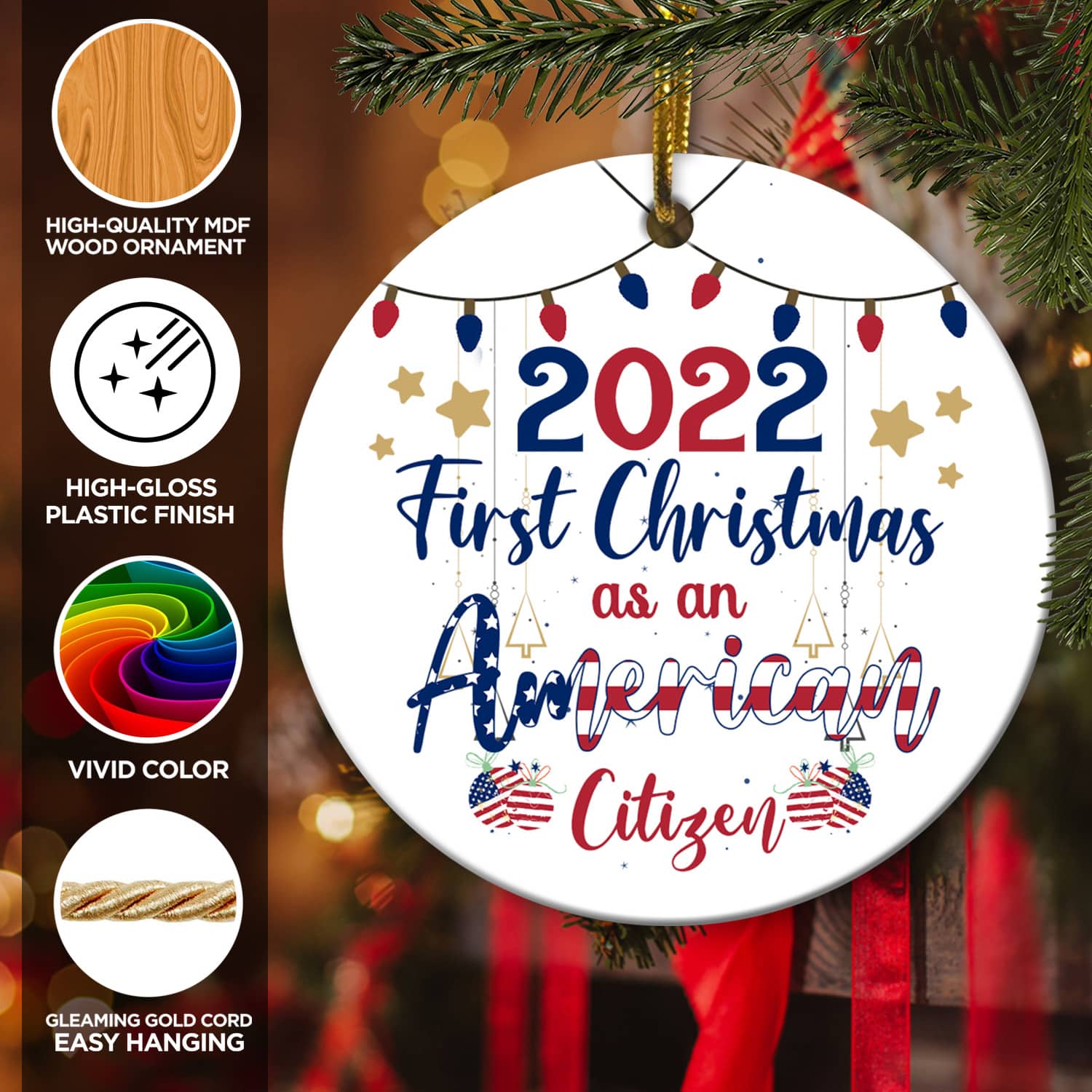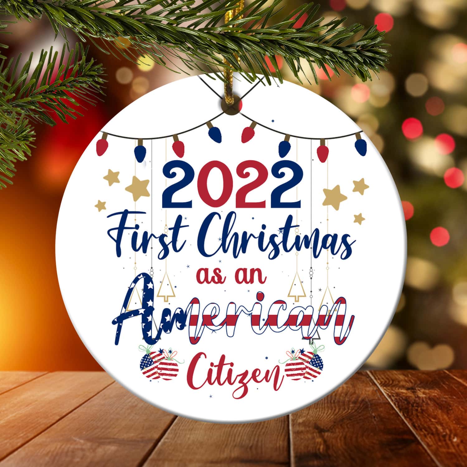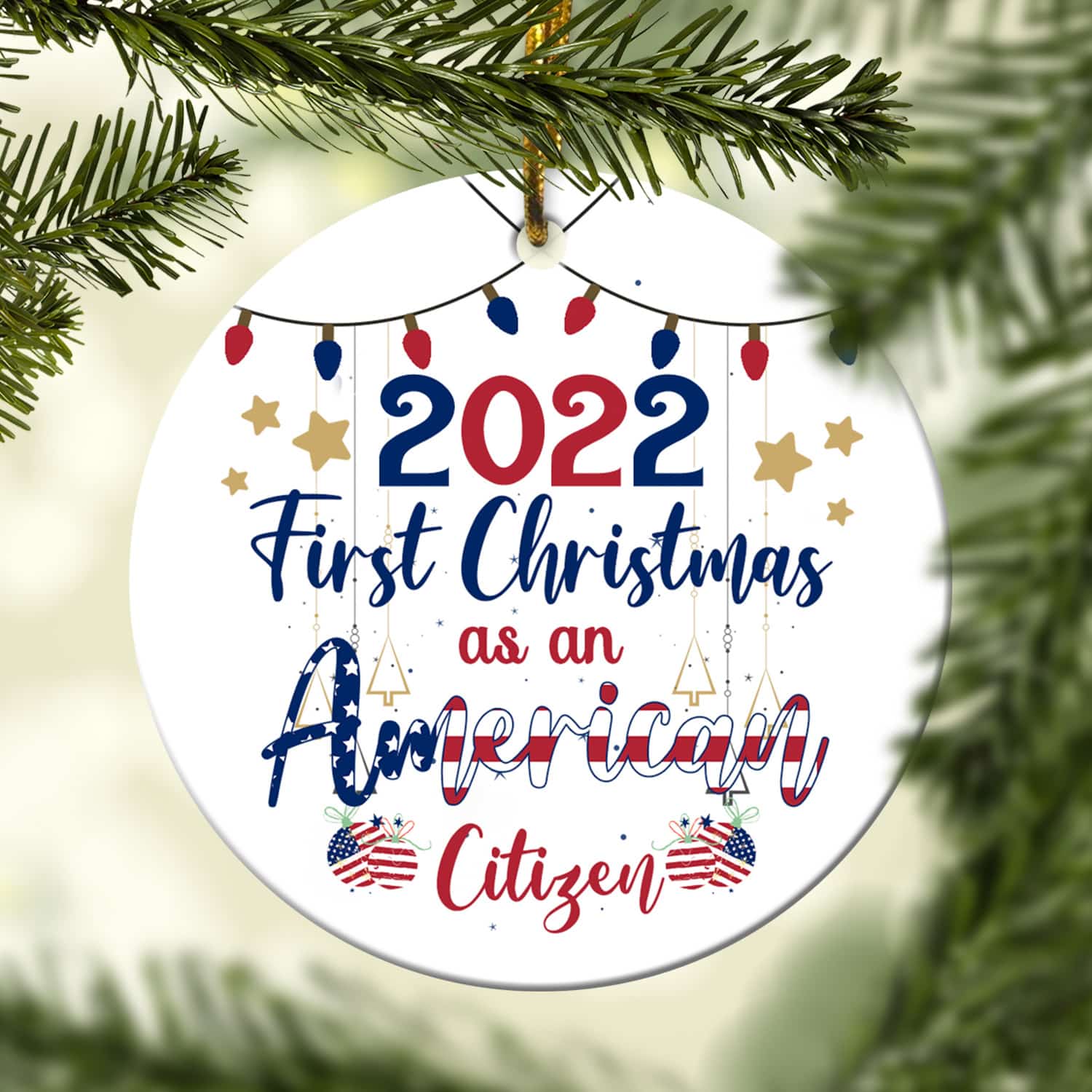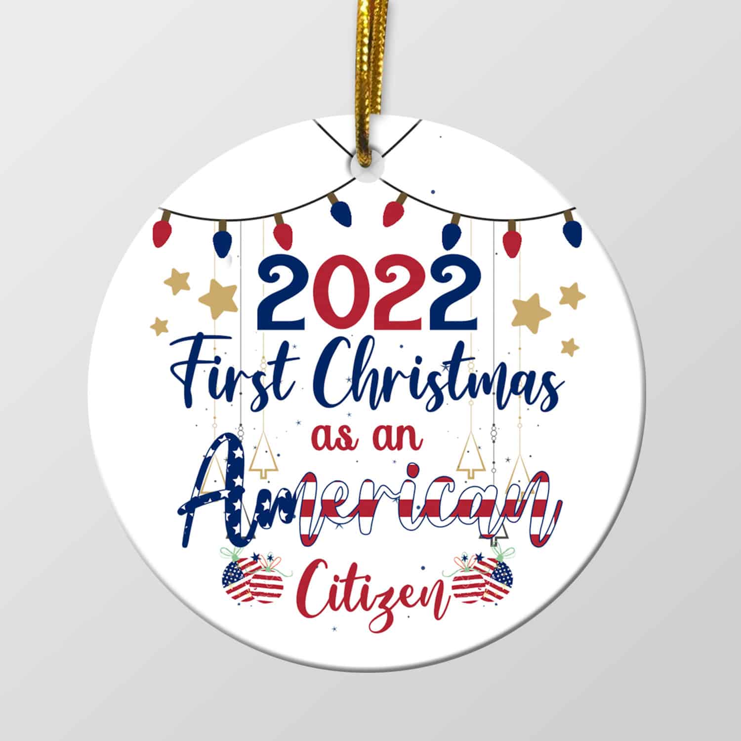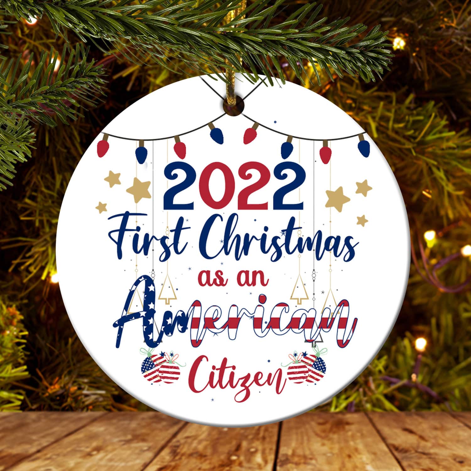 Let’s Shop First Christmas As An American Citizen 2022 Ornament Keepsake – Holiday Flat Circle Porcelain Ornament!