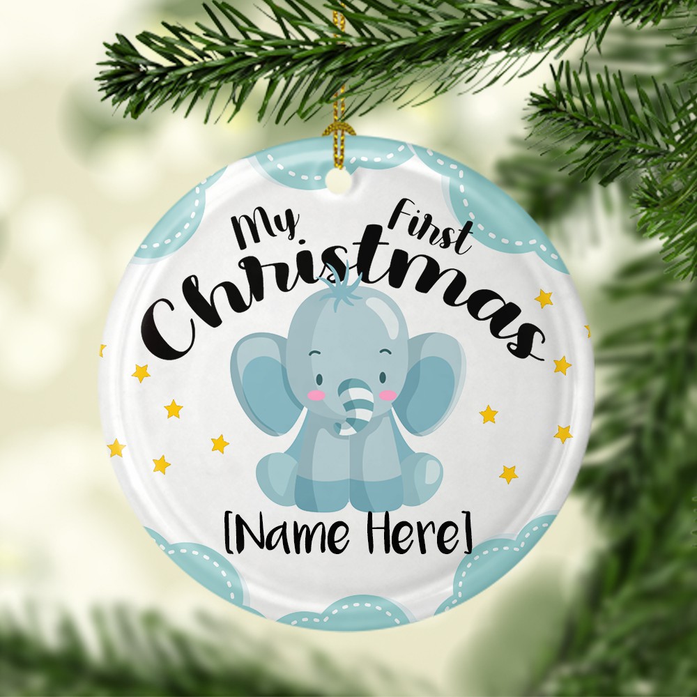 Shop Baby’s First Christmas Personalized Christmas Ornament Keepsake – Circle Porcelain Ceramic Ornament.