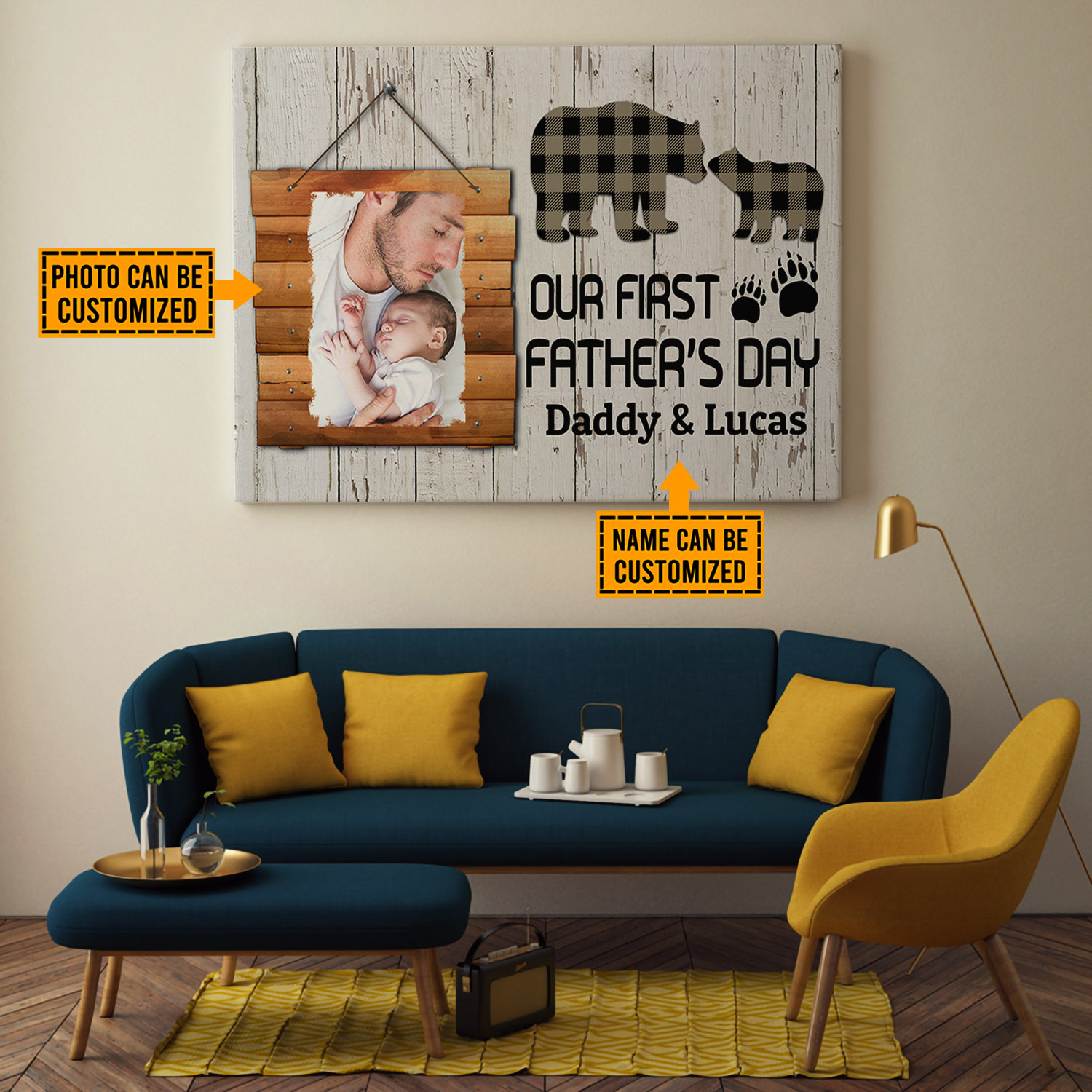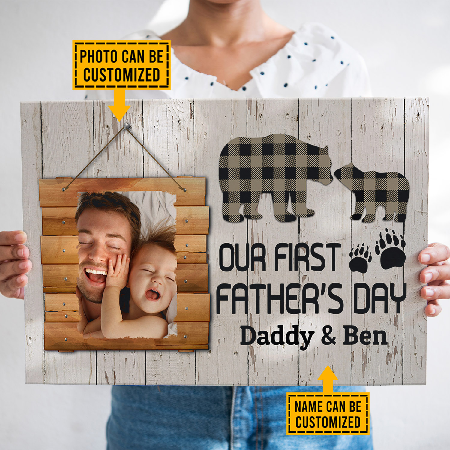 Let’s Shop Personalized Photo Our First Father’s Day Bear Gallery Wrapped Framed Canvas Prints – Unframed Poster!