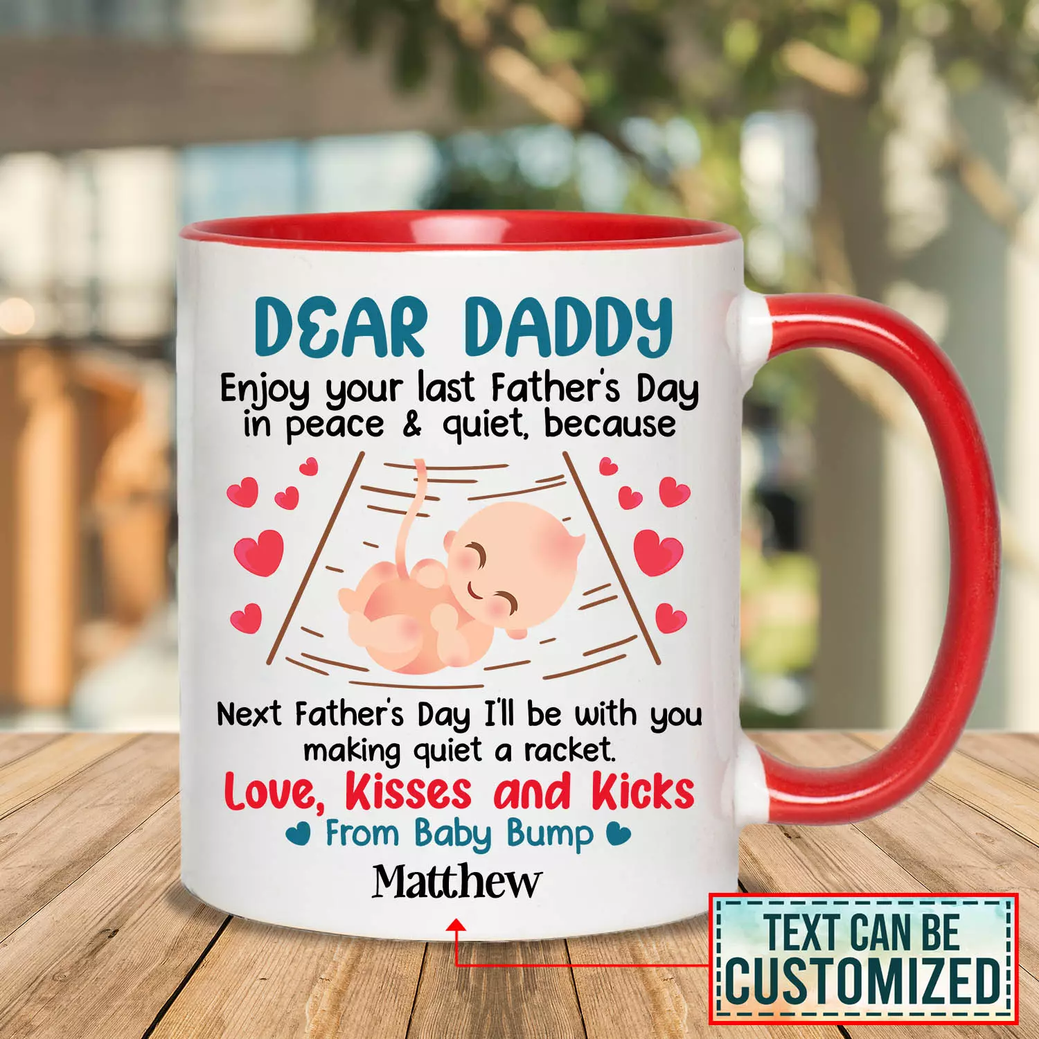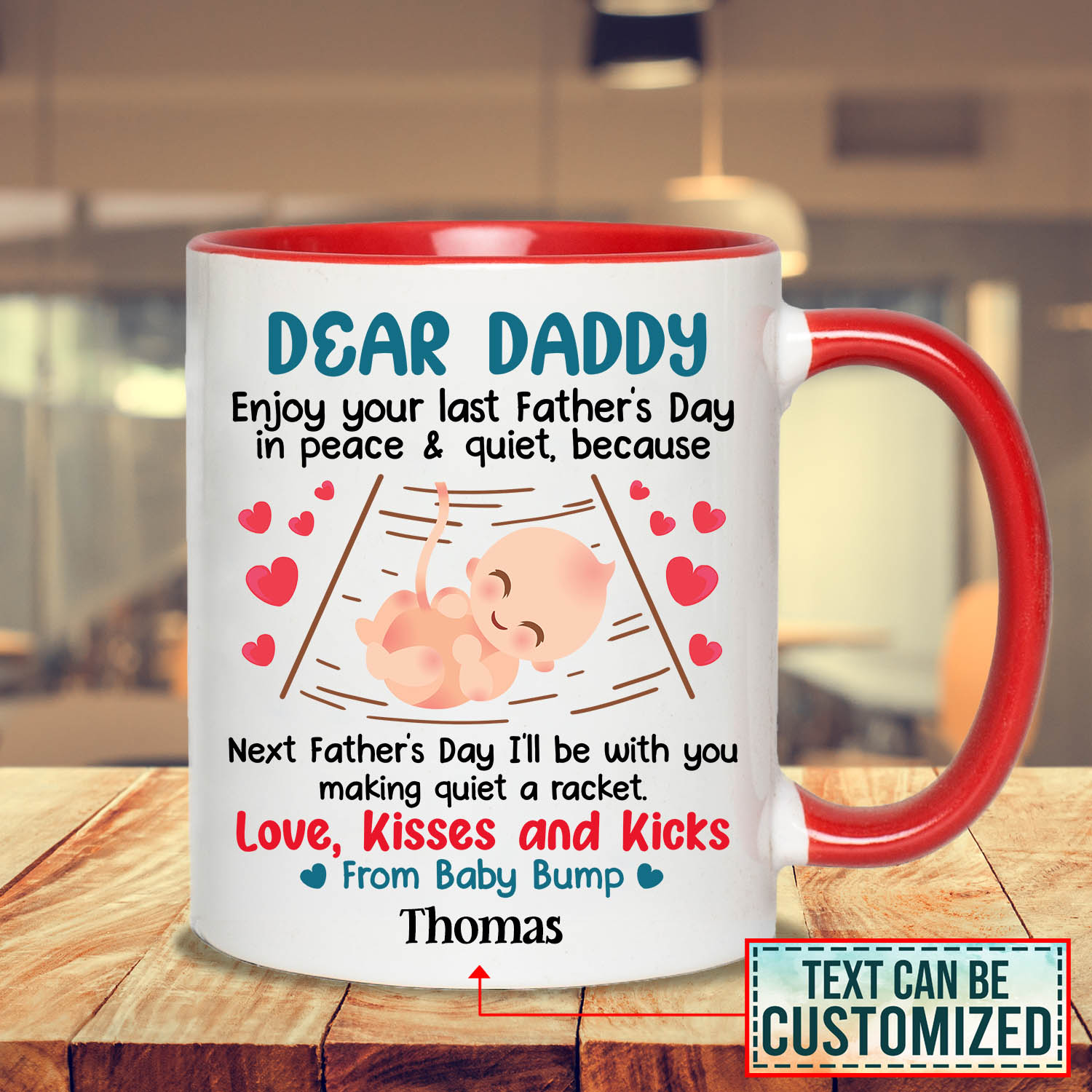 Let’s Shop Personalized Dear Daddy Enjoy Your Last Father’s Day In Peace And Quiet Dad To Be Accent Mug – Coffee Mug!