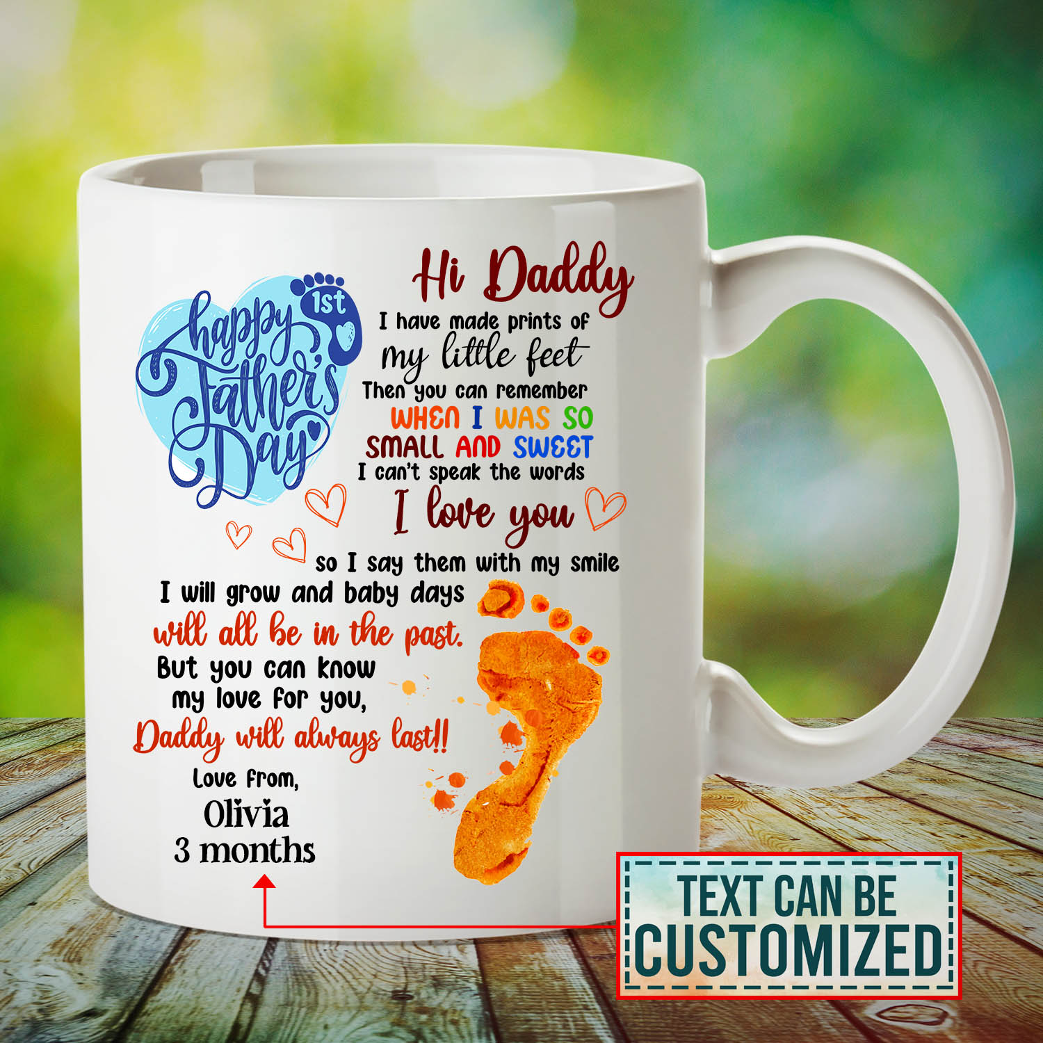 Let’s Shop Personalized Hi Daddy I Have Made Prints Of My Little Feet Happy 1st Father’s Day Coffee Mug – Travel Bottle!