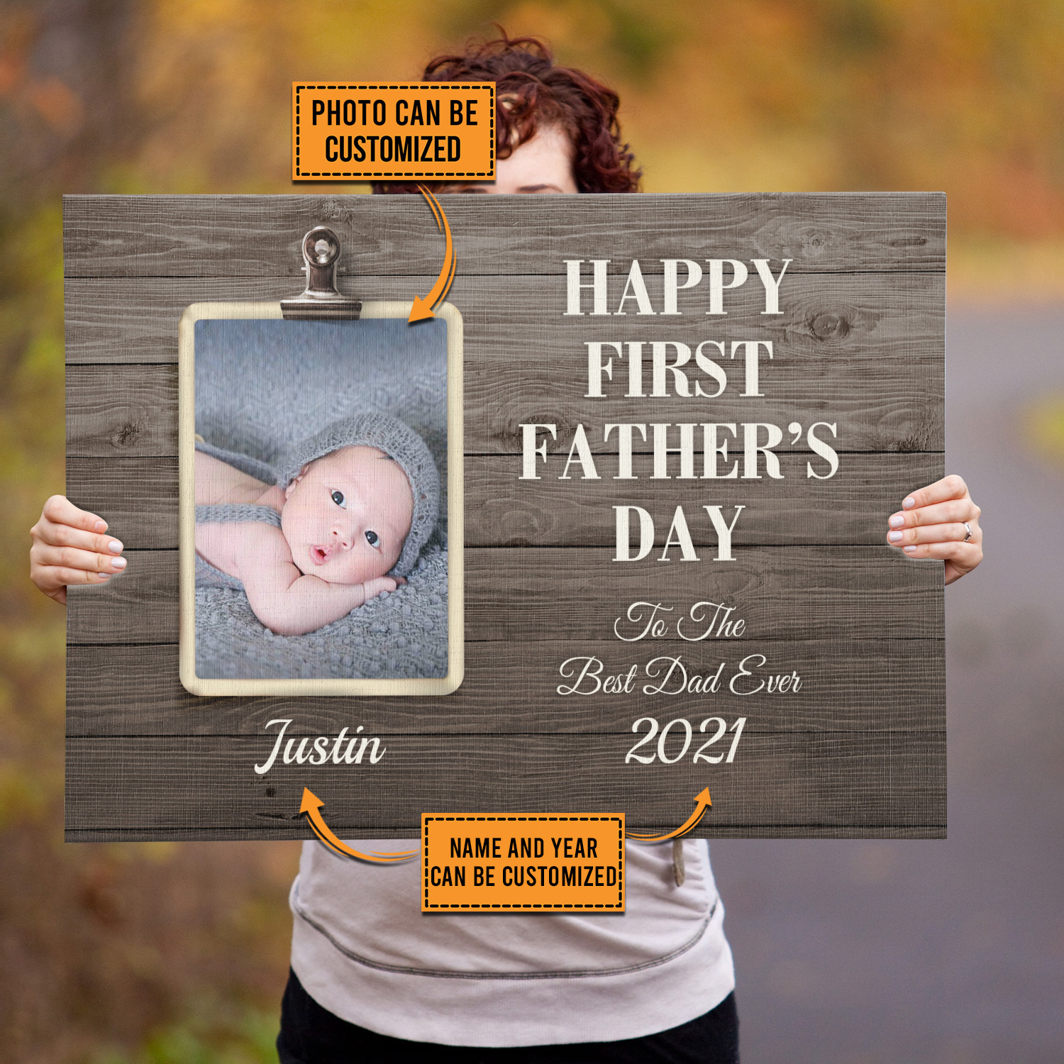 Let’s Shop Personalized Custom Photo Happy First Father’s Day Framed Canvas – 1st Father’s Day Unframed Poster!