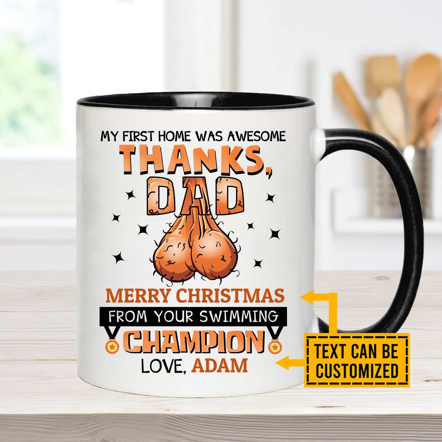 Let’s Shop My First Home Was Awesome Thanks Dad From Your Swimming Champion Funny Accent Mug – Personalized Gift For Dad!