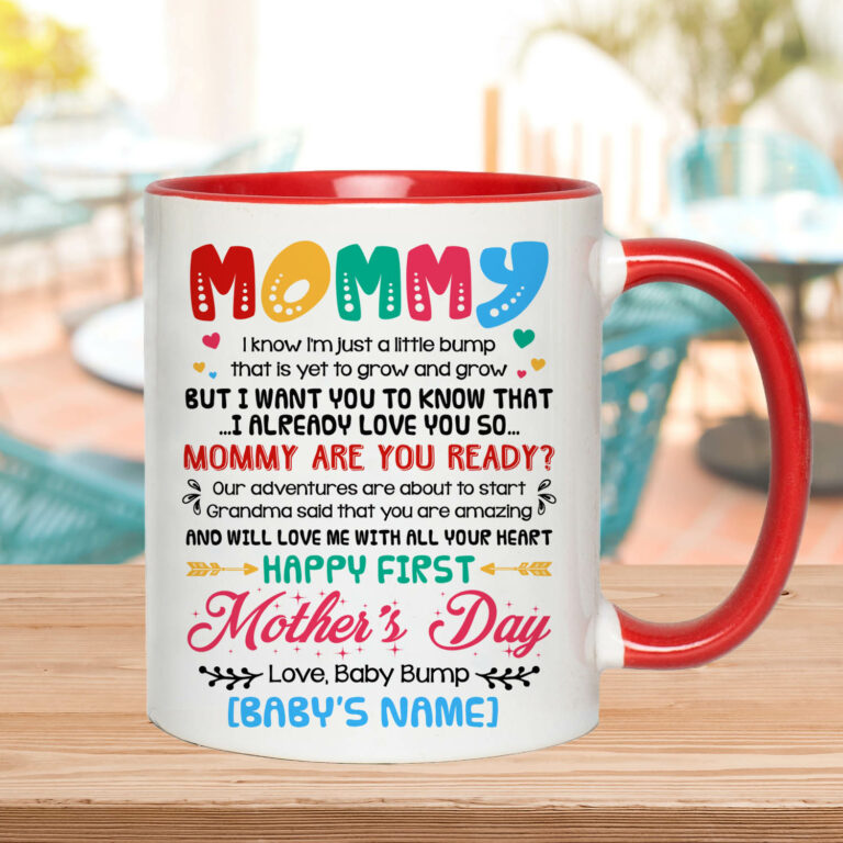 Let’s Shop Personalized Mommy I Know I’m Just A Little Bump Happy First Mother’s Day Accent Mug – Ceramic Coffee Mug!