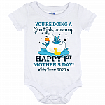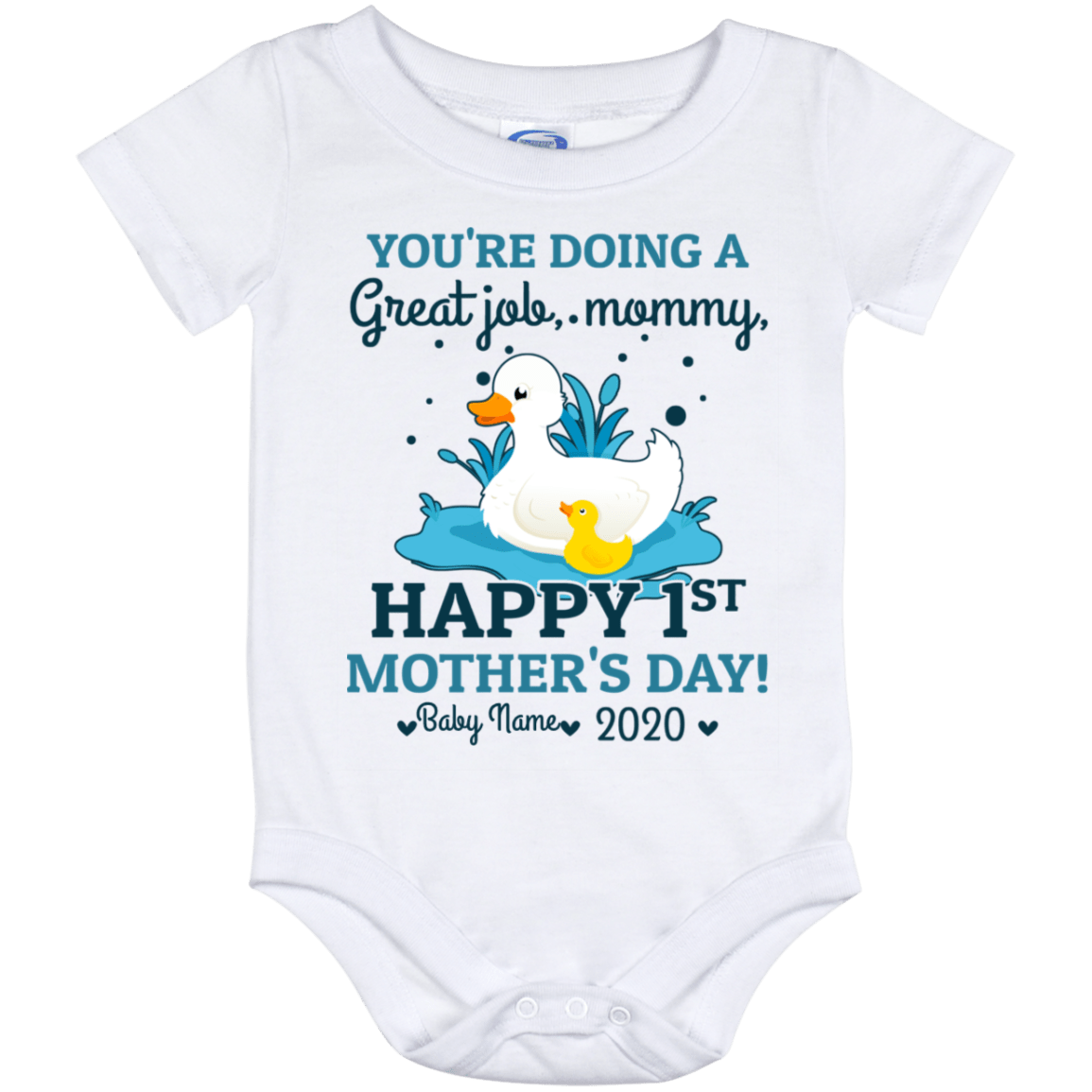 Shop Happy 1st Mother’s Day Duck Custom Personalized Baby Onesie – Baby Infant Bodysuit.