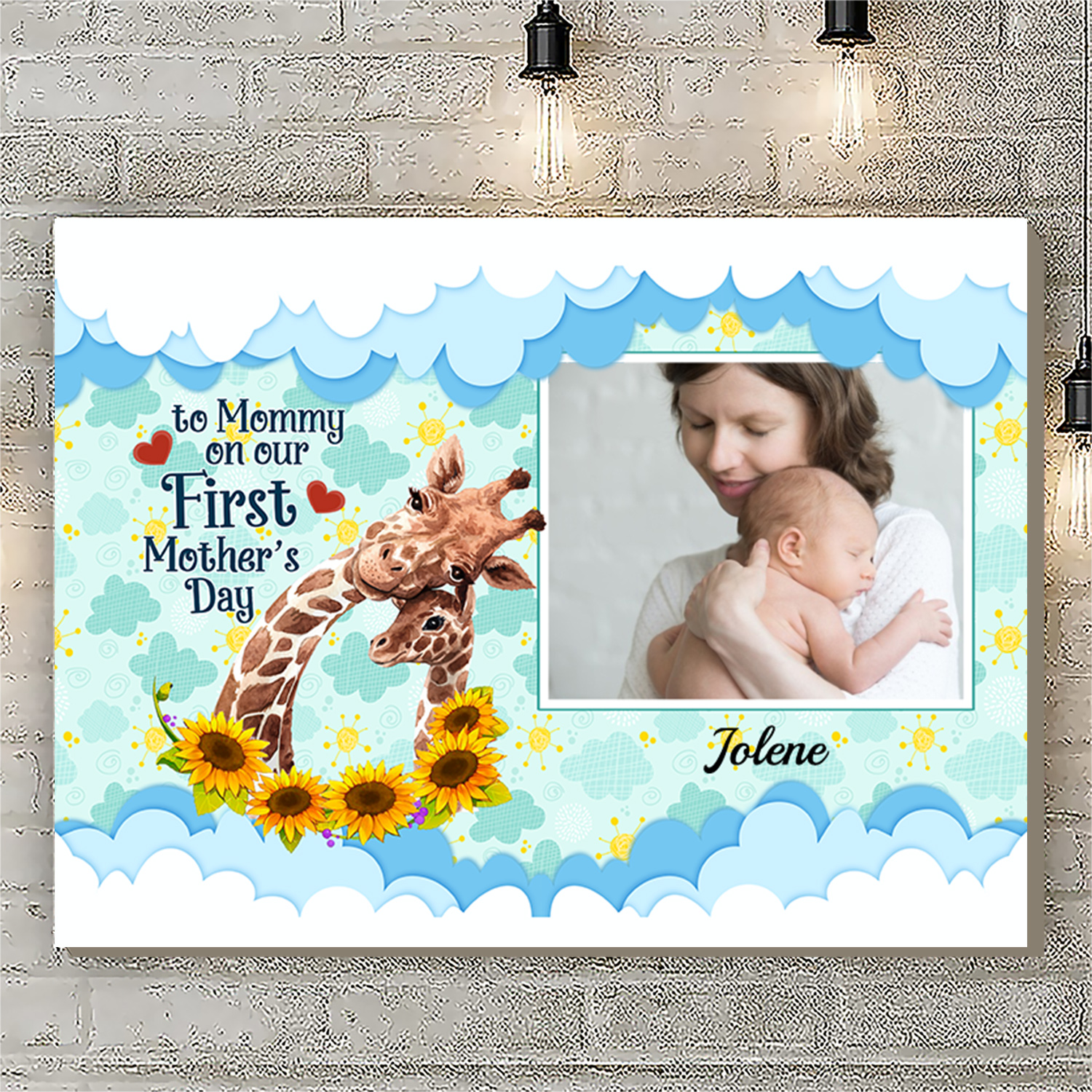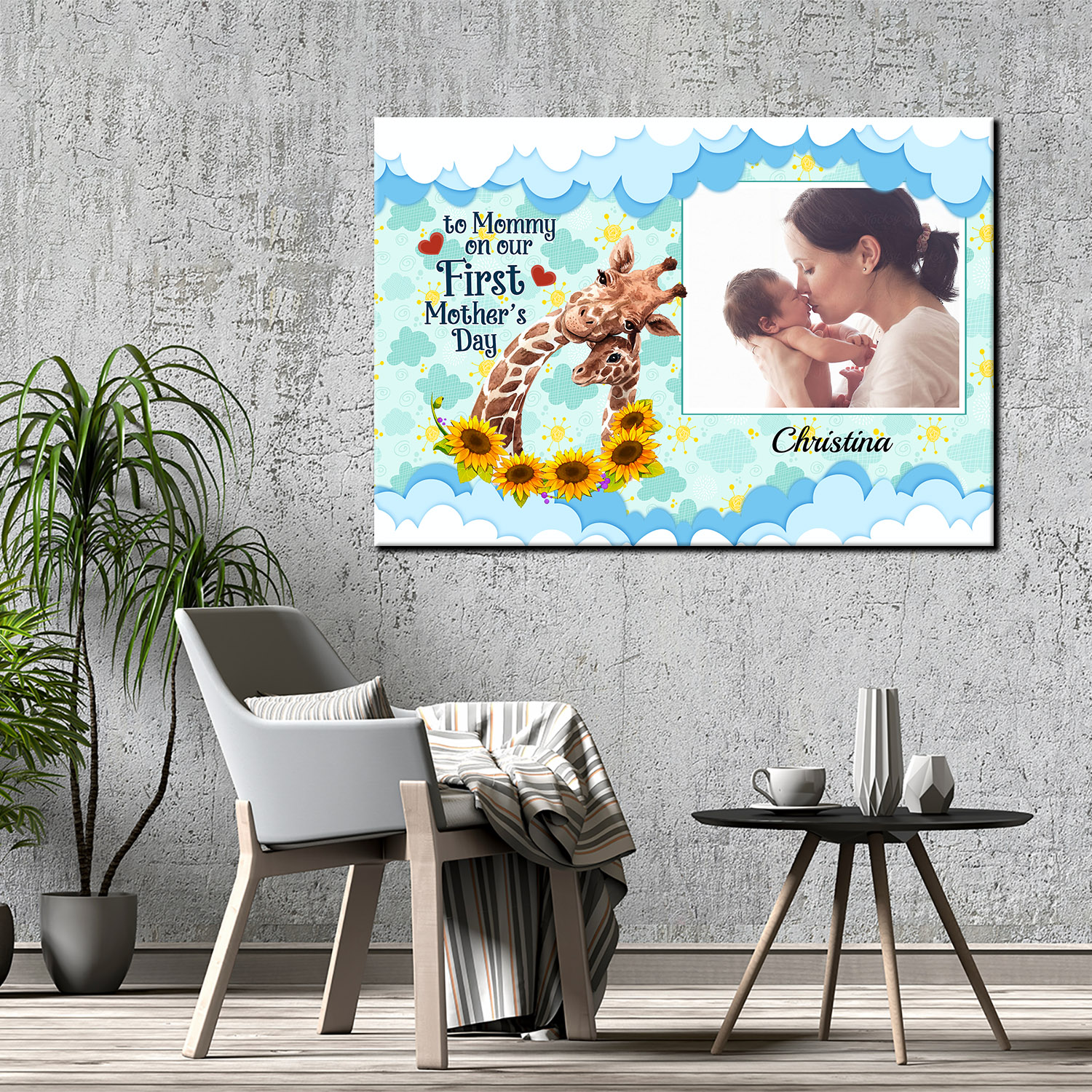 Let’s Shop Personalized Custom Photo Giraffe To Mommy On Our First Mother’s Day Framed Canvas – Unframed Poster!