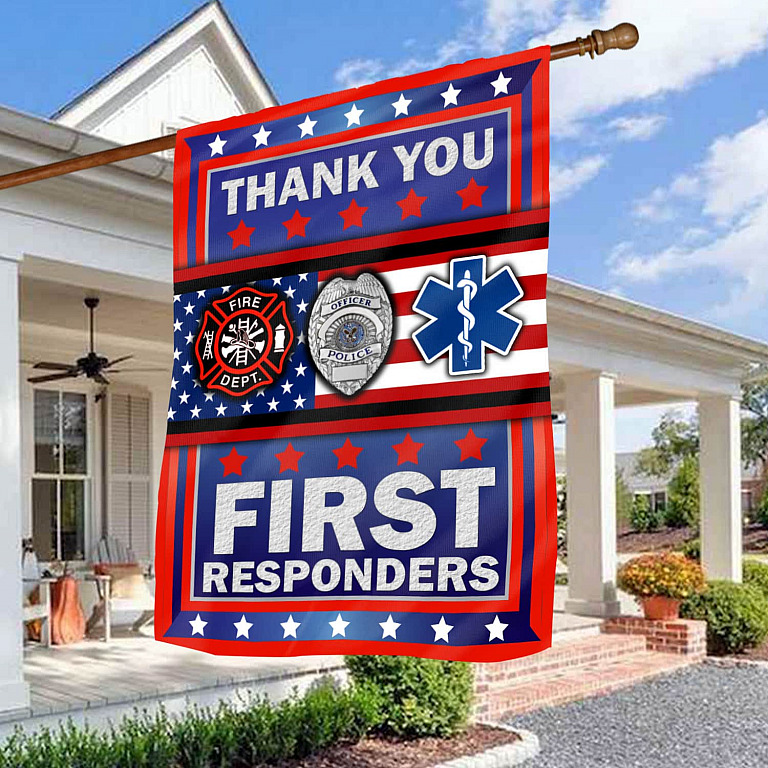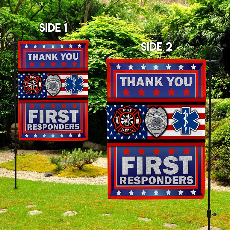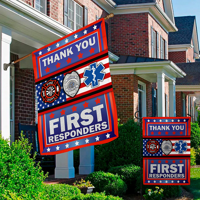 Let’s Shop Thank You First Respondents Decorative Garden Flag – House Flag – Honor United State American Military Veteran Flag!