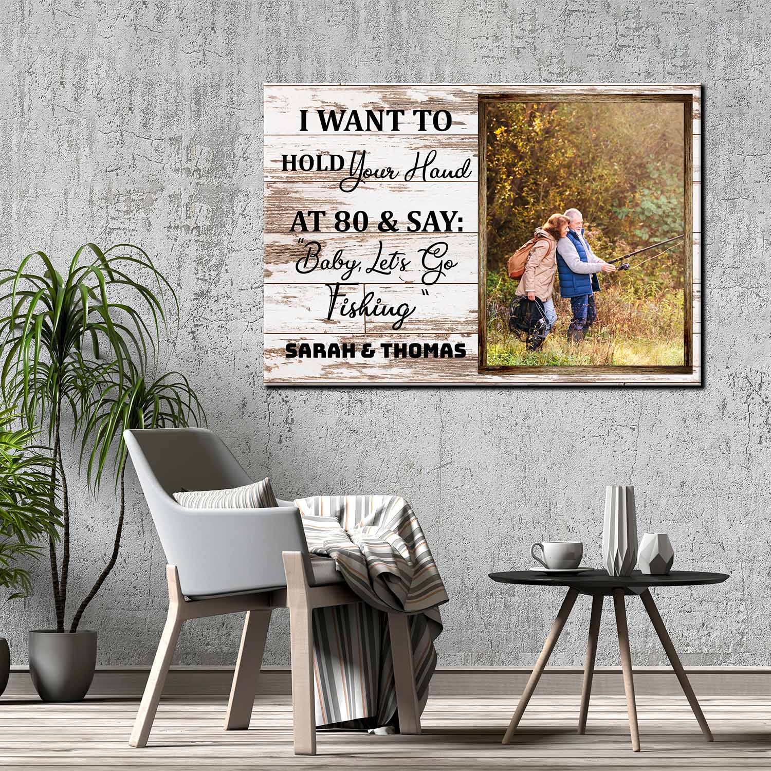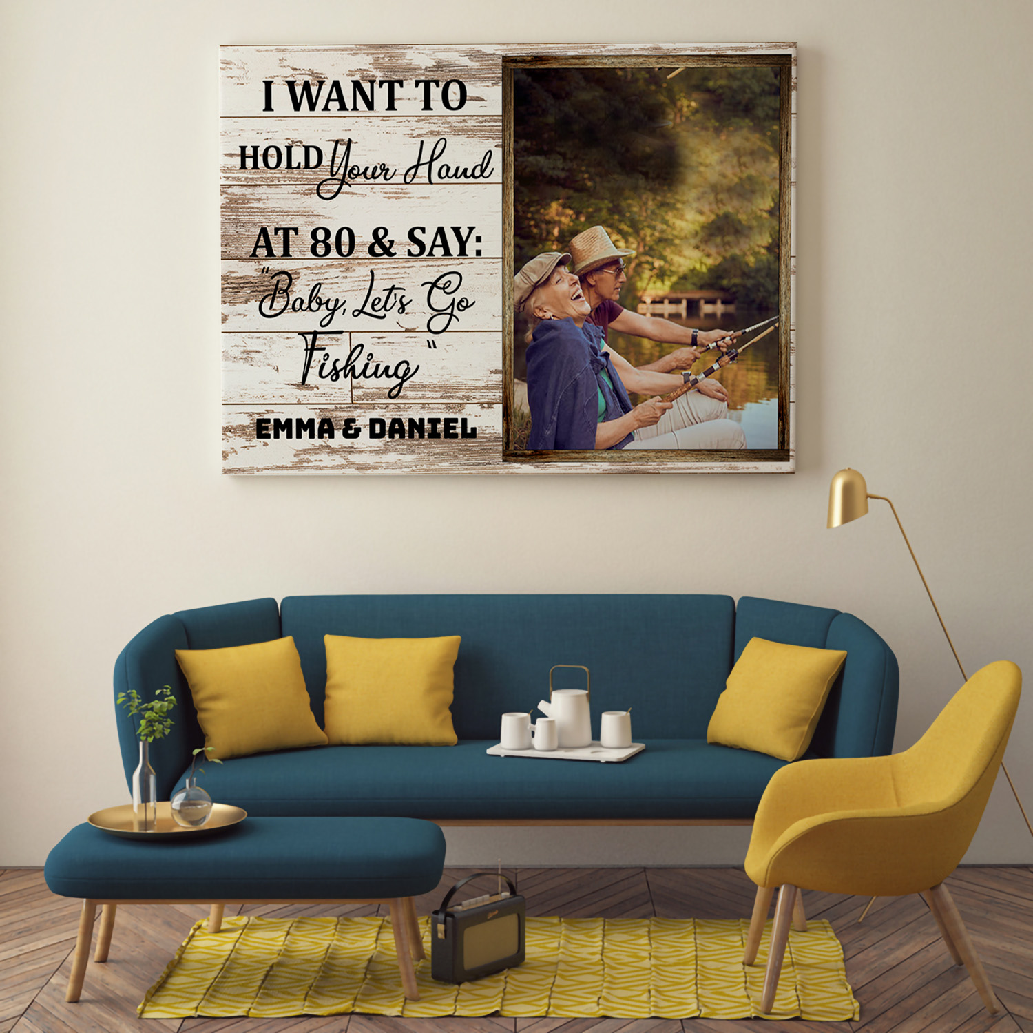 Let’s Shop Personalized Photo I Want To Hold Your Hand At 80 And Say Baby Let’s Go Fishing Canvas Prints – Unframed Poster!