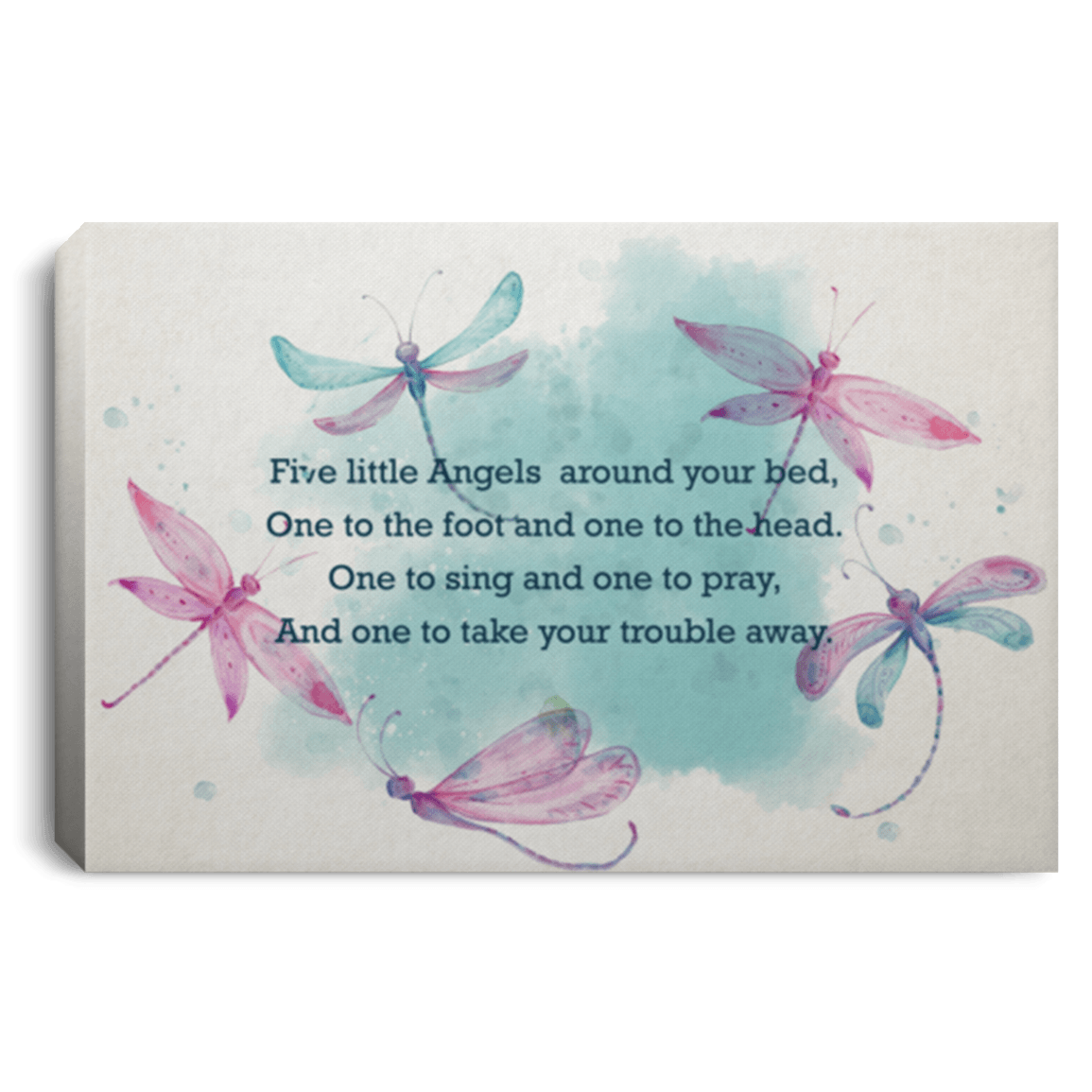Five Little Angel-s Around Your Bed Dra-gonfly Framed Canvas – Unframed Poster