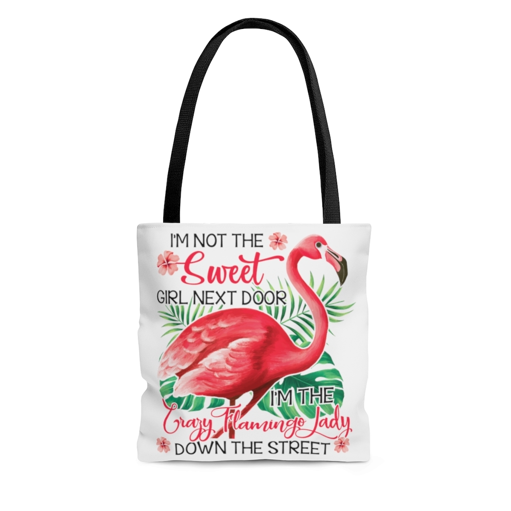 I’m Not The Sweet Girl Next Door I’m The Crazy Flamingo Lady Down The Street All Over Print Tote Bag