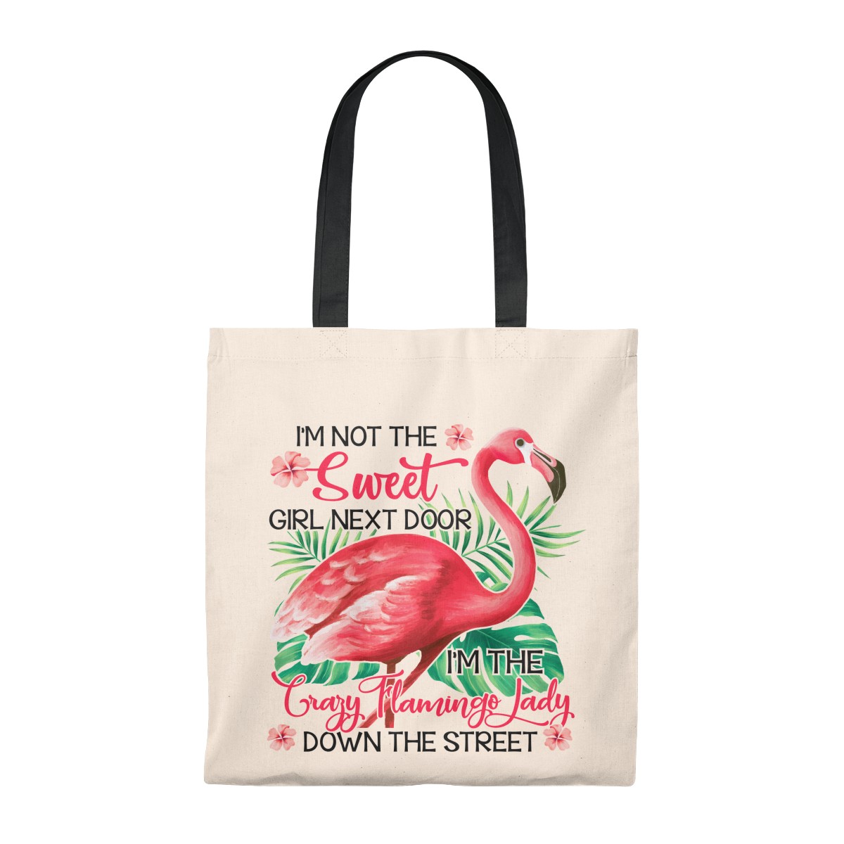 Shop I’m Not The Sweet Girl Next Door I’m The Crazy Flamingo Lady Down The Street Vintage Canvas Tote Bag.
