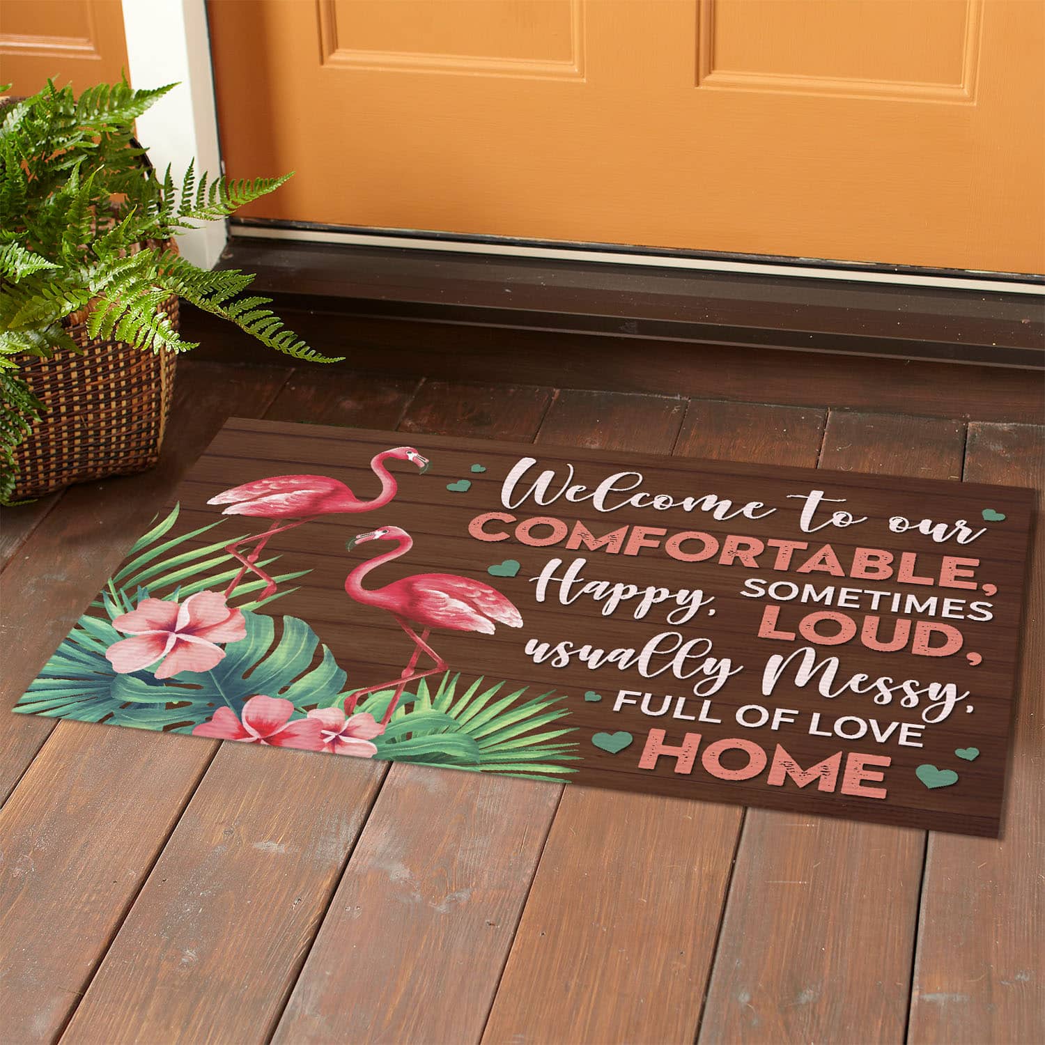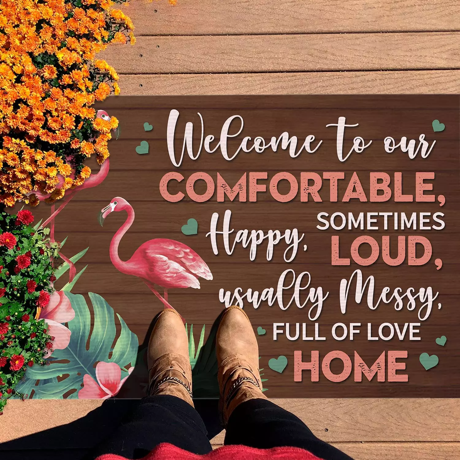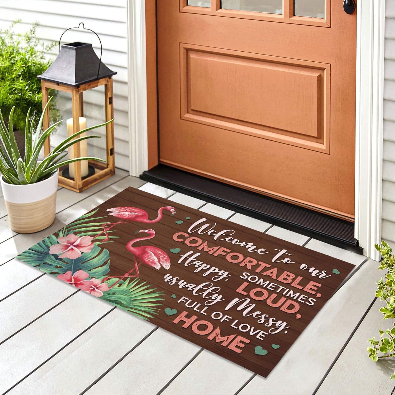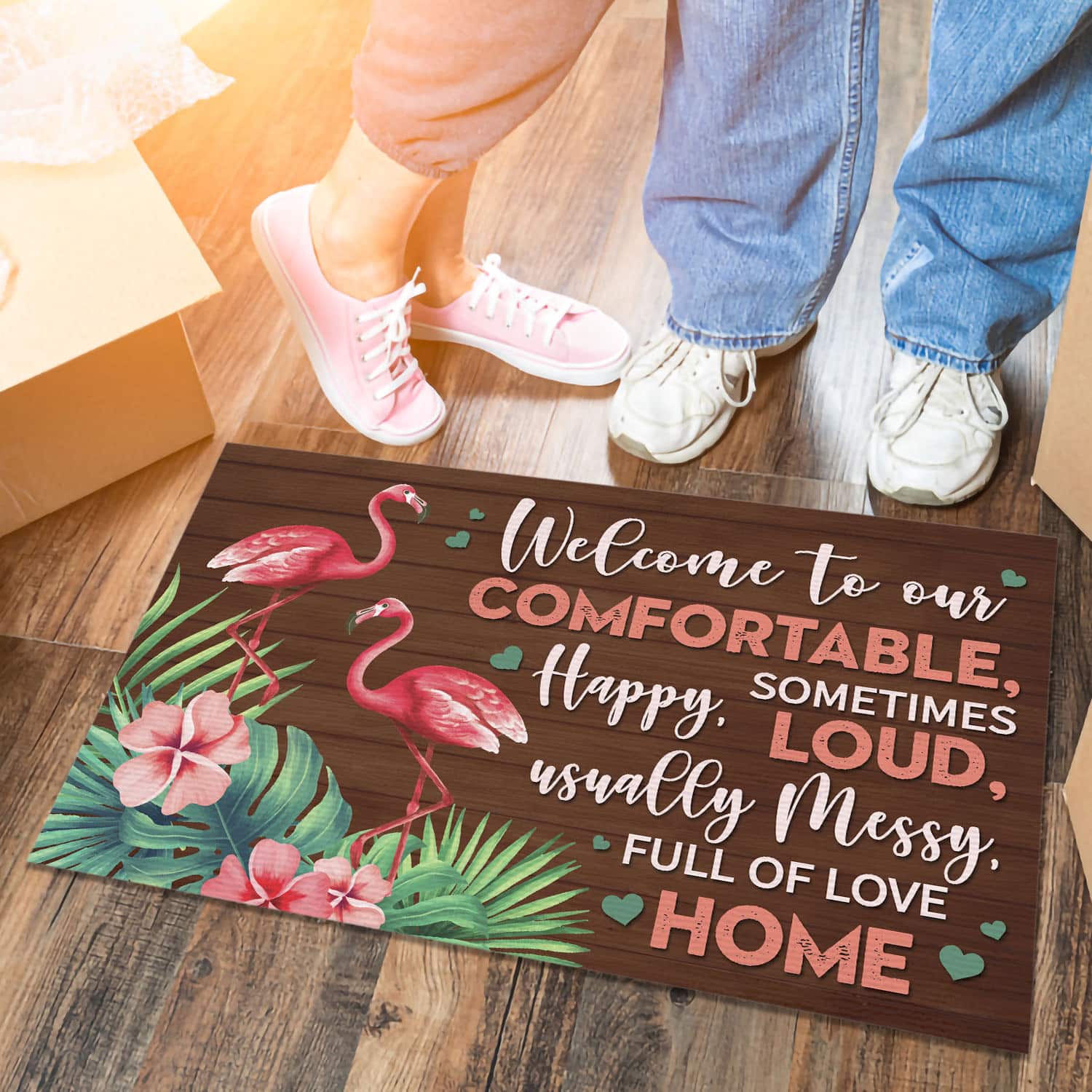 Let’s Shop Flamingos Welcome To Our Comfortable Happy Sometimes Loud Usually Messy Full Of Love House Doormat – Outdoor Doormat!