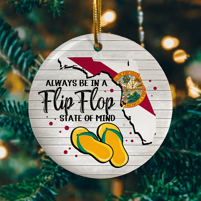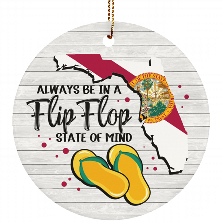 Always-Be a Flip Flop State Of-Mind Florida Christmas Ornament Keepsake – Circle Porcelain Ceramic Ornament