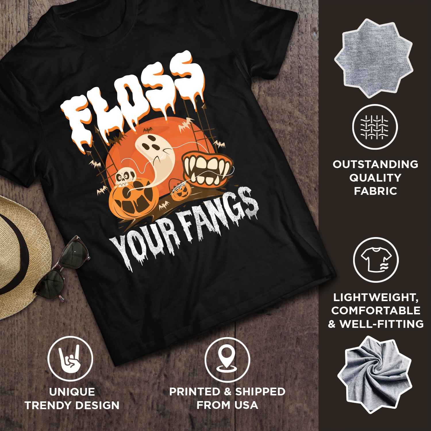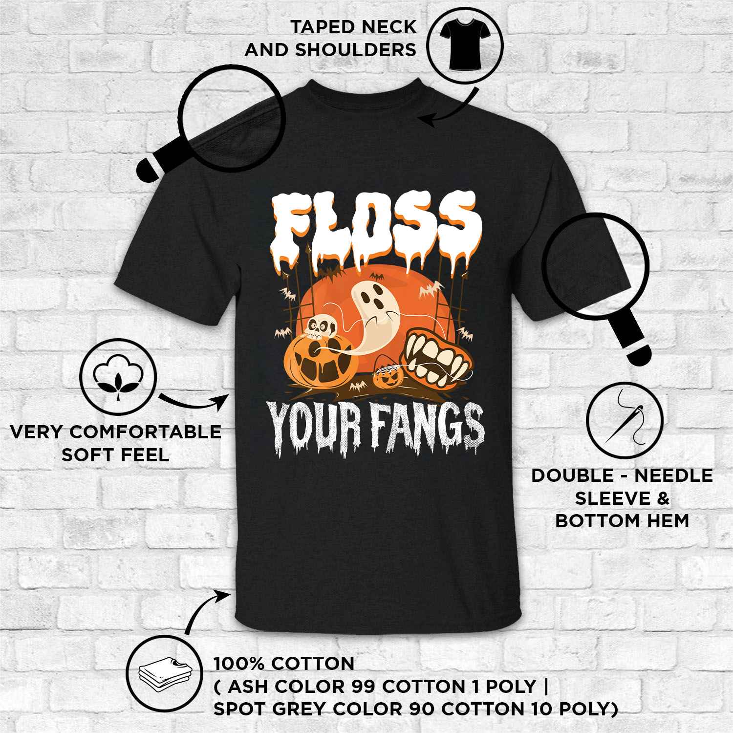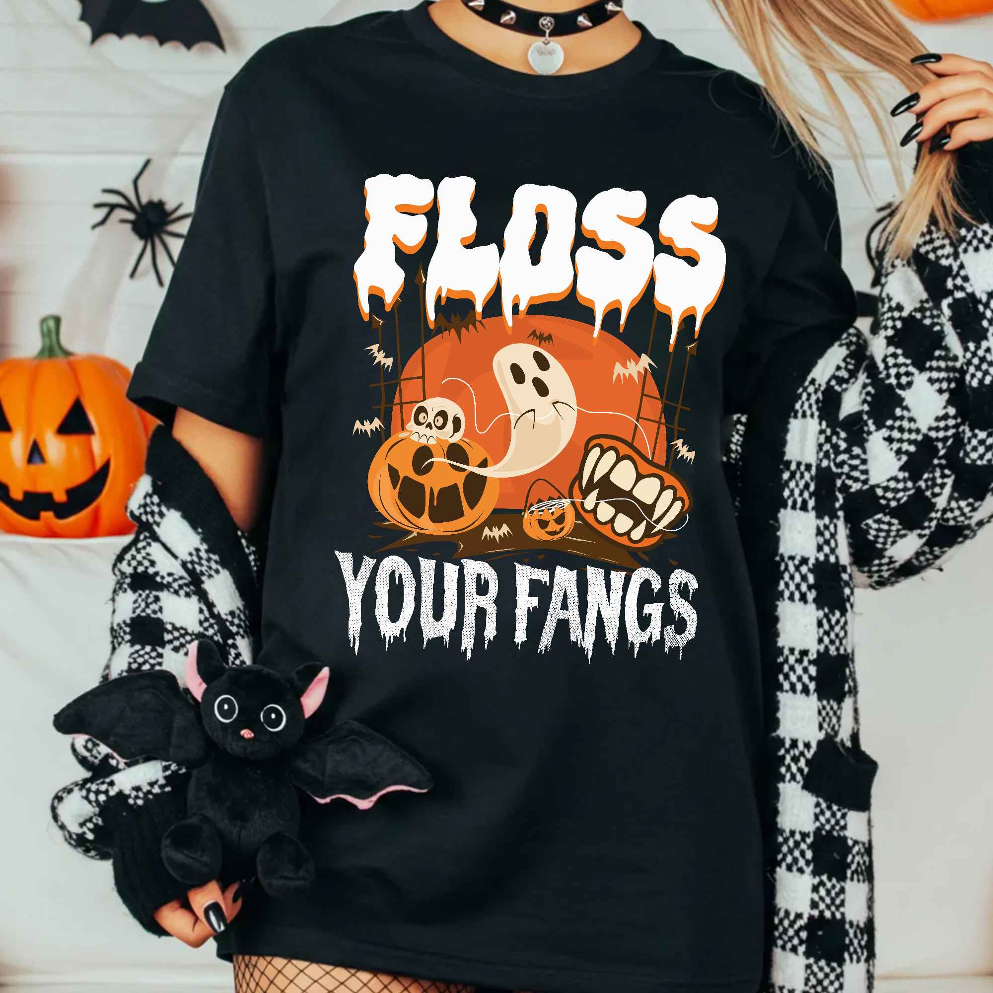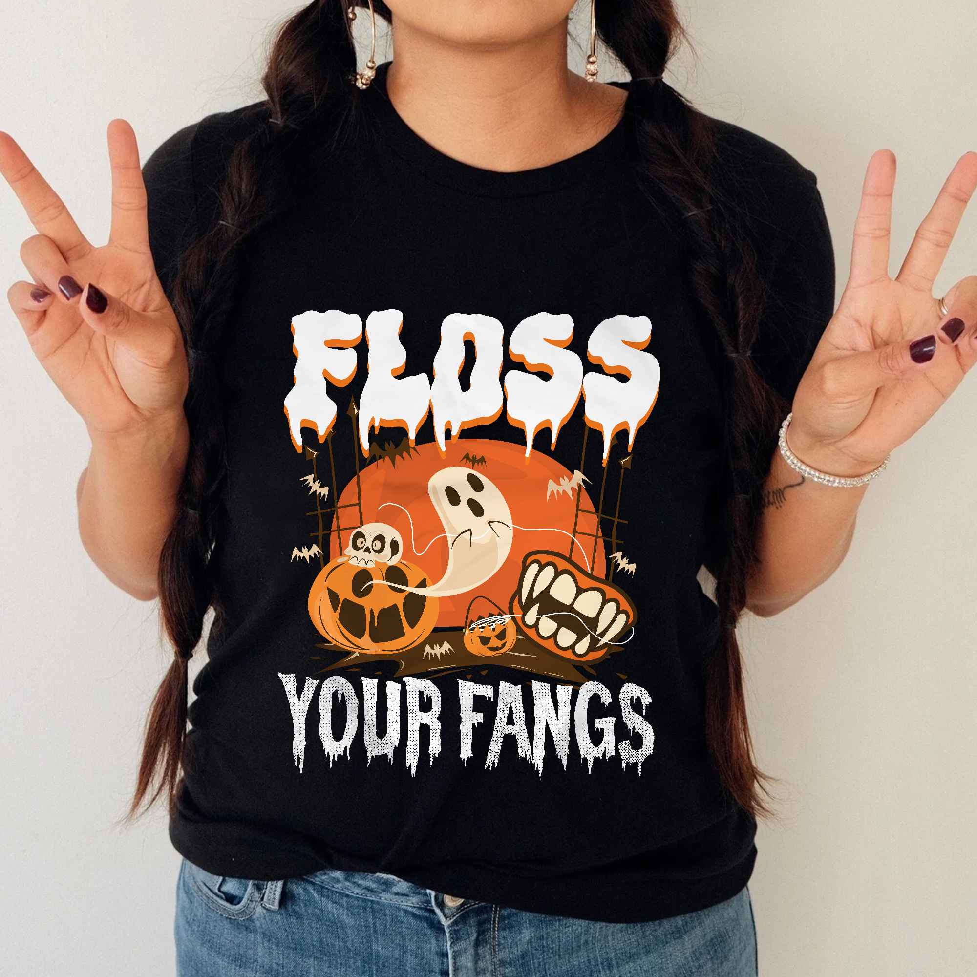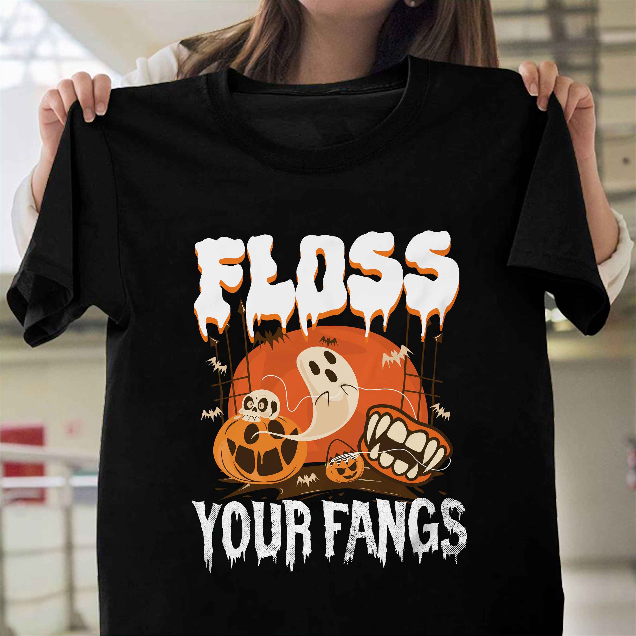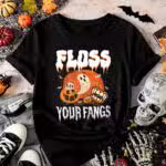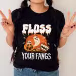 Floss Your Fangs Funny Dental Hygienist Boo Ghost T-Shirt – Halloween Dentist V-Neck Shirt