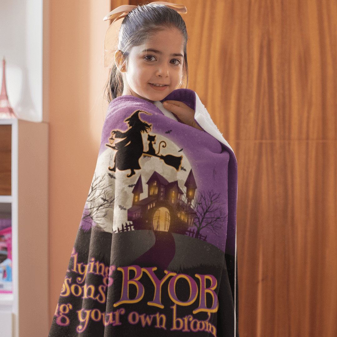 Shop Free Flying Lesson Bring Your Own Broom Halloween Fleece Blanket – Premium Sherpa Blanket – Woven Blanket.