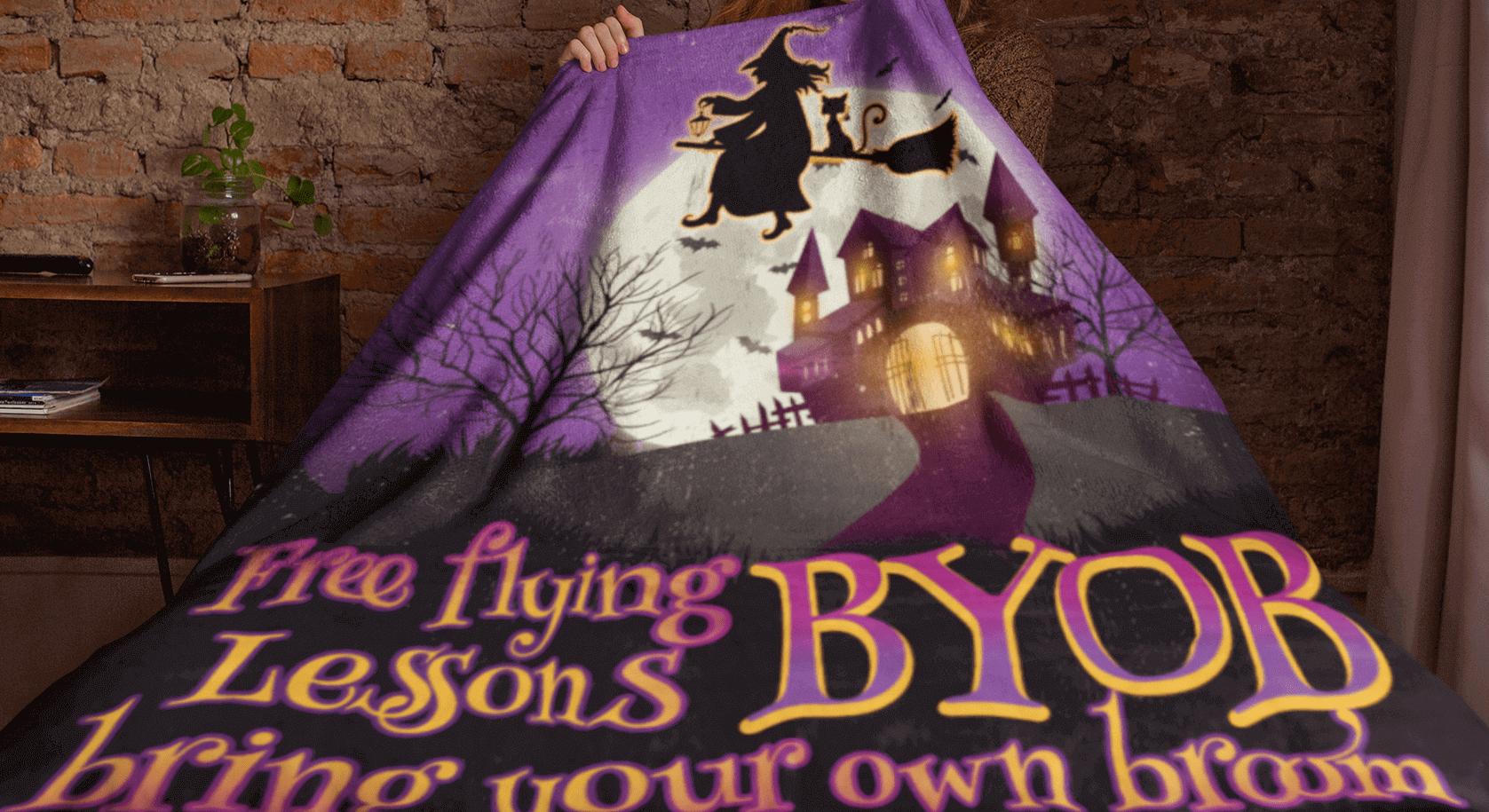 At CubeBik LLC, besides blankets, we also offer tees, hoodies, sweaters, raglans, tanks, wall arts, canvases, mugs, throw pillows, tote bags, hats, accessories and more on our website, so do not miss other Flying Lesson Halloween Witch Blanket, Free Flying Lesson Bring Your Own Broom Blanket, Free Fying Lesson Bring Your Own Broom Canvas, Halloween Witch Blanket, Halloween Gifts for Kids, Halloween Night Blanket, Flying Witch Halloween Blanket, Flying Lesson Witch Halloween Blanket, Halloween Blanket for Kids, Halloween Fleece Blanket relating merchandise, and all of them are one of a kind custom designs you can’t get elsewhere in normal stores. Let’s discover CubeBik and find your favorites. We can’t wait to surprise and build beautiful memory with you and your loved ones.