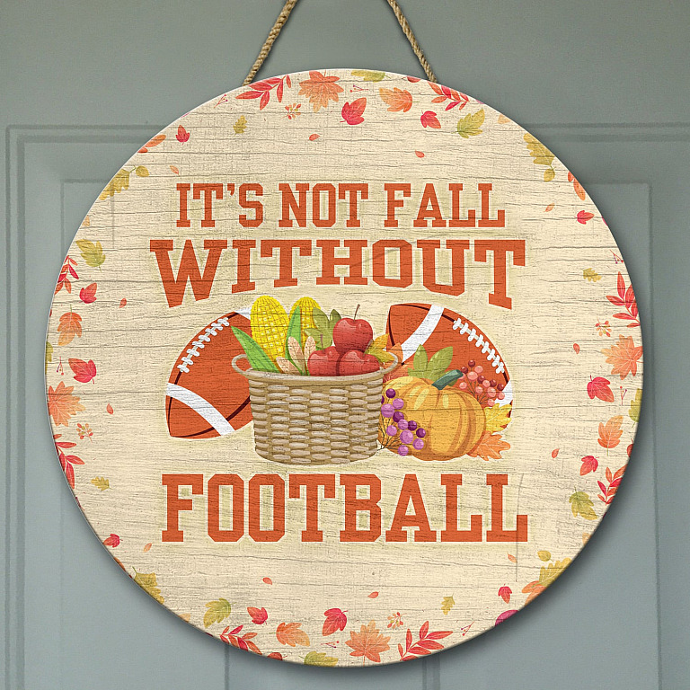 Let’s Shop It’s Not Fall Without Football Decorative Wooden Door Sign – Autumn Front Porch Sign!
