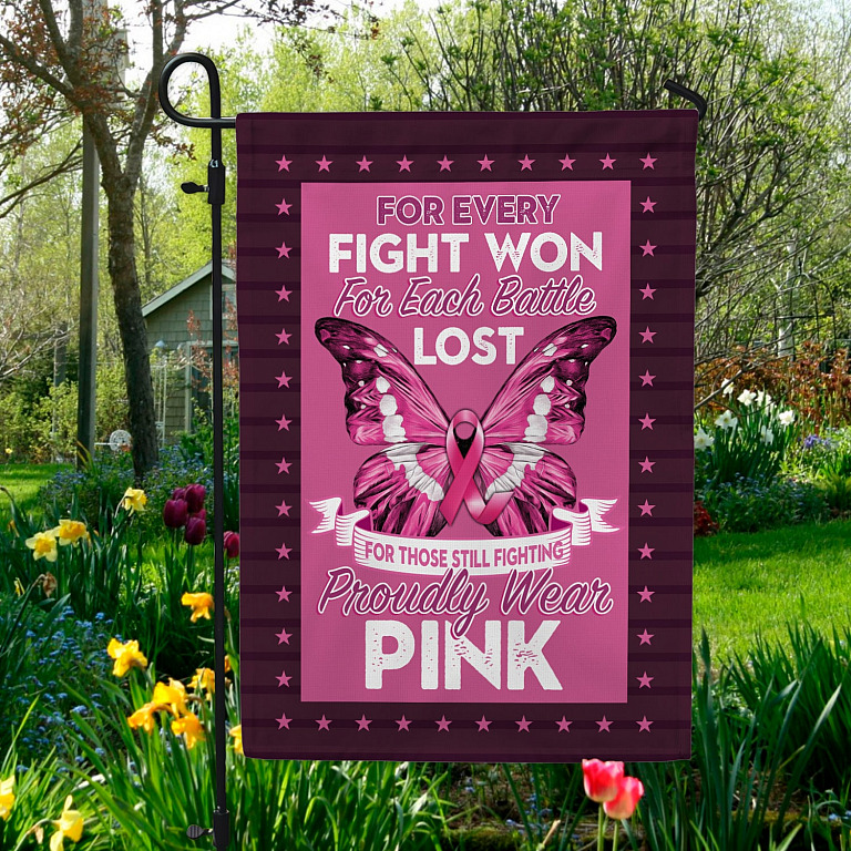 Let’s Shop For Every Fight Won For Each Battle Lost For Those Still Fighting Proudly Wear Pink Decorative Garden Flag – Breast Cancer Awareness House Flag!