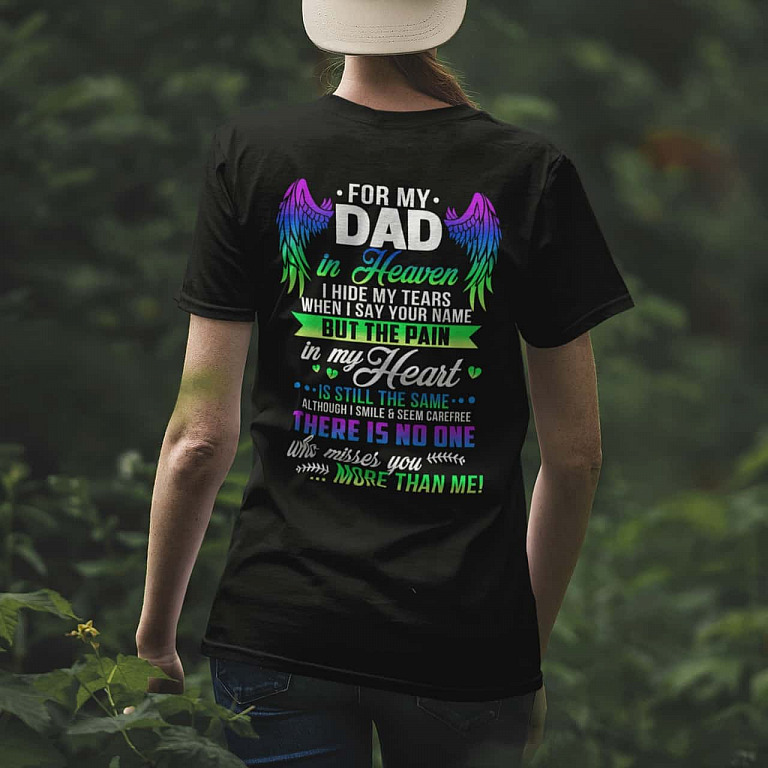 For My Dad In Heaven I Hide My Tears But The Pain In My Heart Is Still The Same Print On Back T-Shirt – V-Neck Shirt