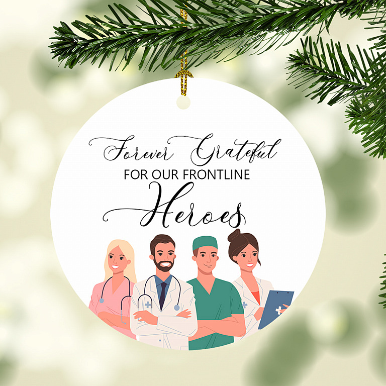 Let’s Shop Forever Grateful for Our Frontline Heroes 2020 Pandemic Healthcare Workers Christmas Holiday Circle Ornament!