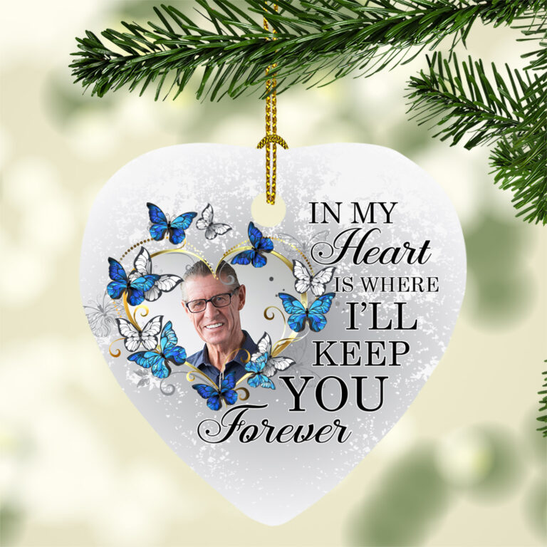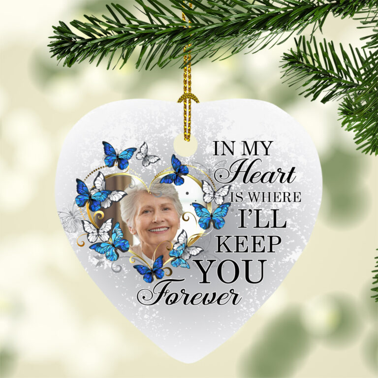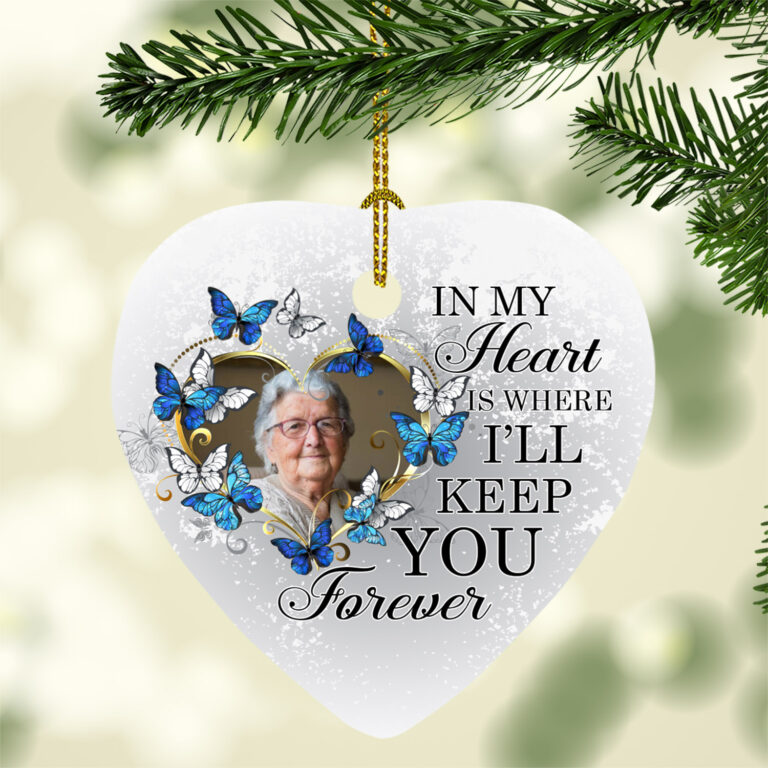 Let’s Shop Personalized Photo In My Heart Is Where I’ll Keep You Forever Heart Ornament Keepsake – Remembrance Gift!