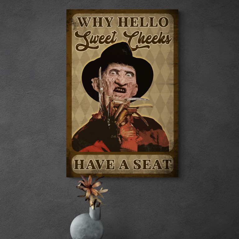 Let’s Shop Why Hello Sweet Cheek Have a Seat Freddy Krueger Canvas Horror Halloween Wrapped Framed Canvas Prints – Unframed Poster – Home Decor Wall Art!