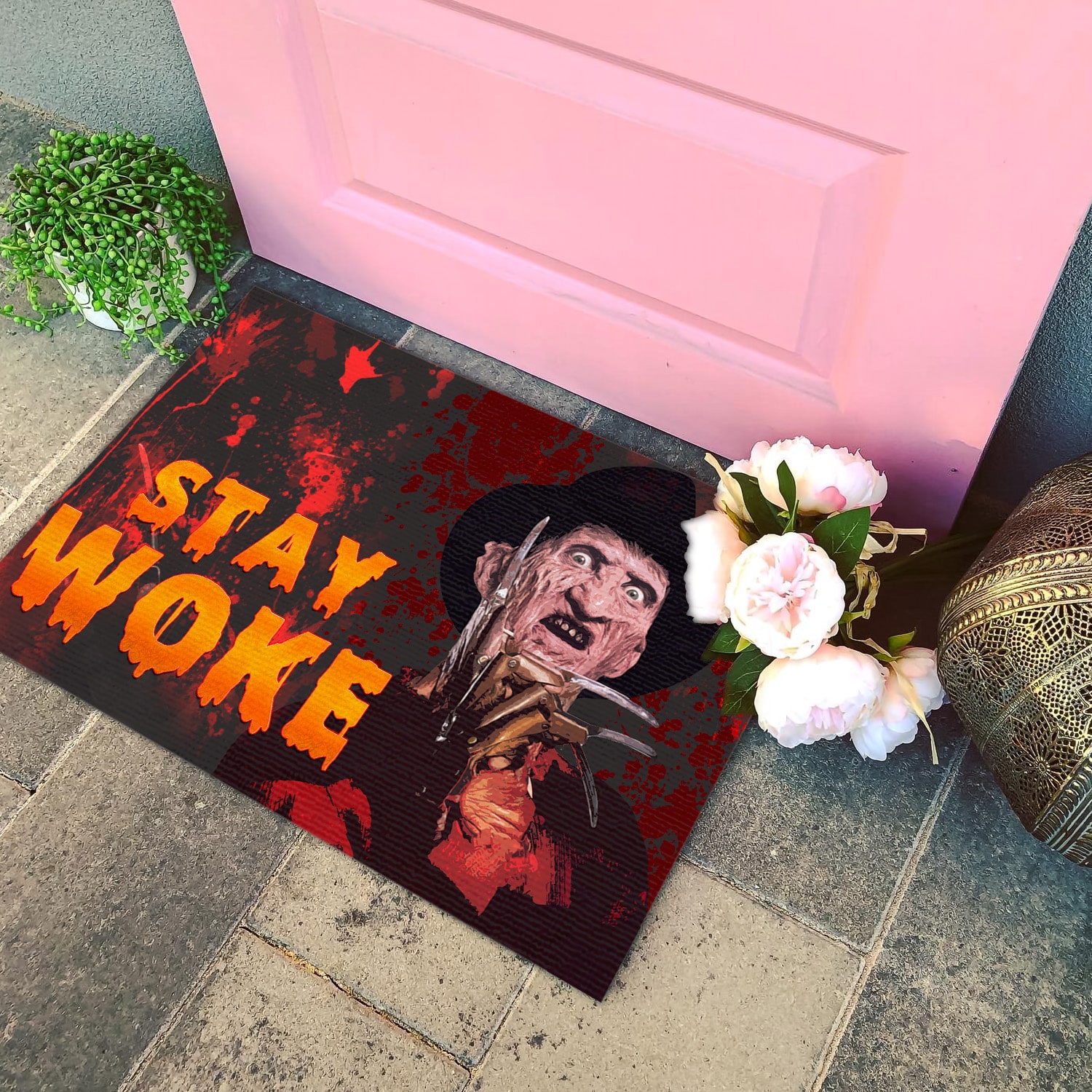Let’s Shop Stay Woke Freddy Horror Halloween Doormat – Outdoor Indoor Doormat – Halloween Horror Character Doormat!