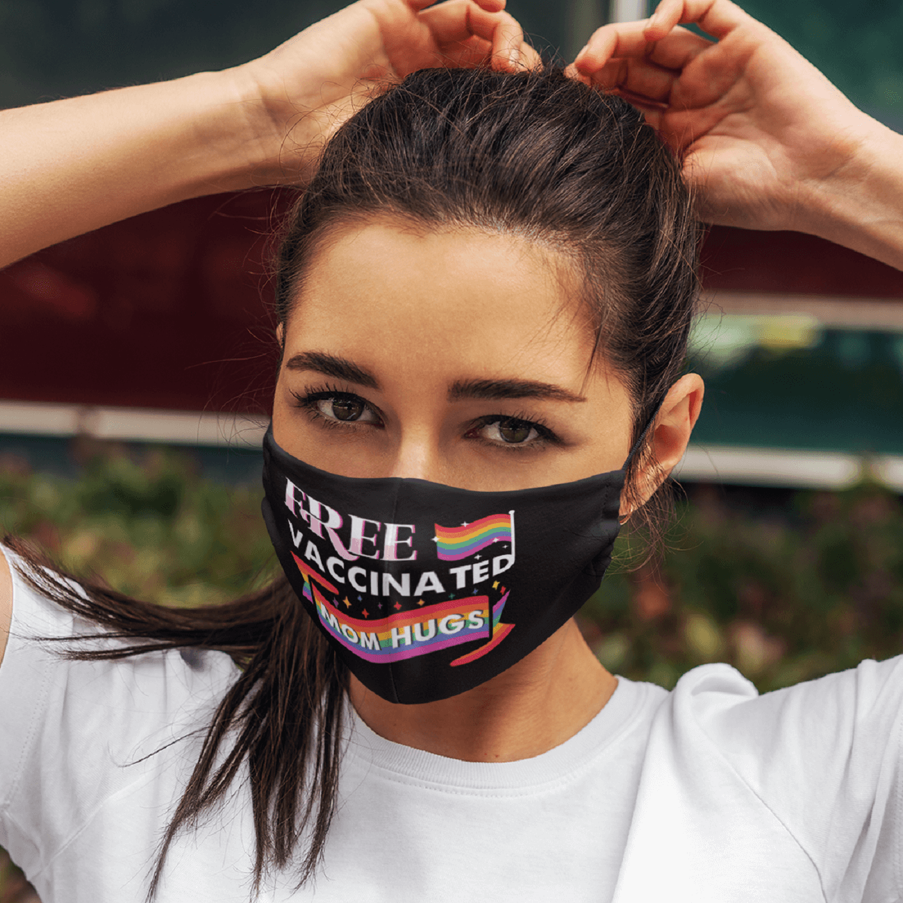 Let’s Shop Gay Pride Rainbow Free Vaccinated Mom Hugs Washable Reusable Custom Printed Cloth Face Mask Cover!