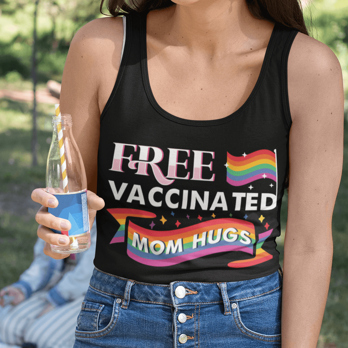 Gay Pride Rainbow Free Vaccinated Mom Hugs Cotton Tank Top Tee – Ladies Racerback Tank