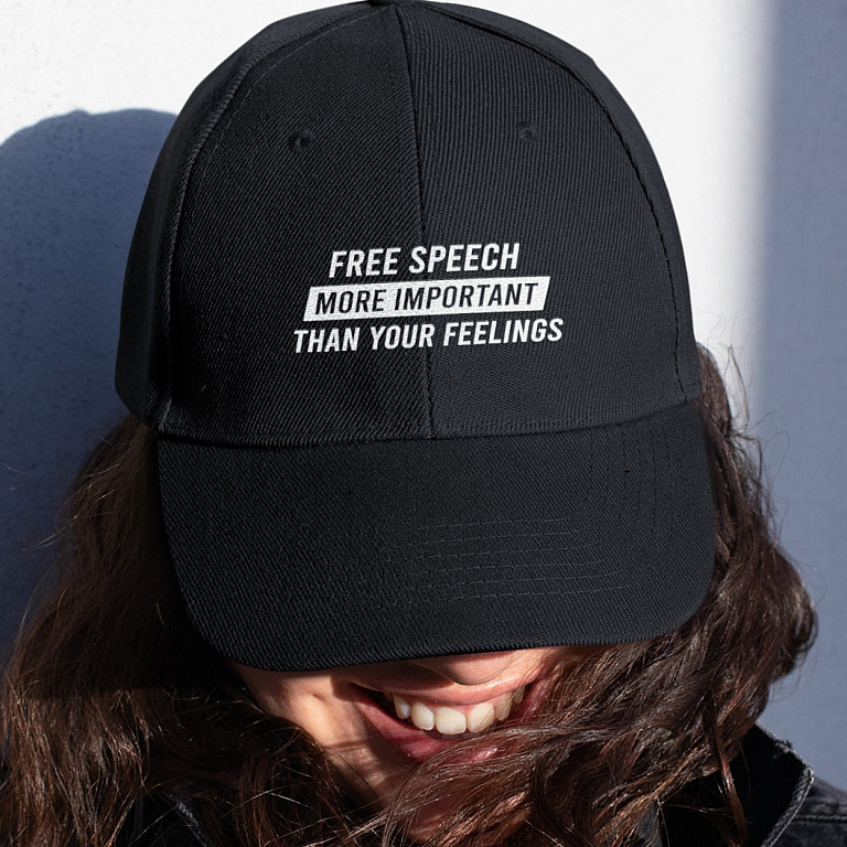 Let’s Shop Free Speech More Important Than Your Feelings Twill Cap – High-Profile Snapback Hat – Trucker Hat!