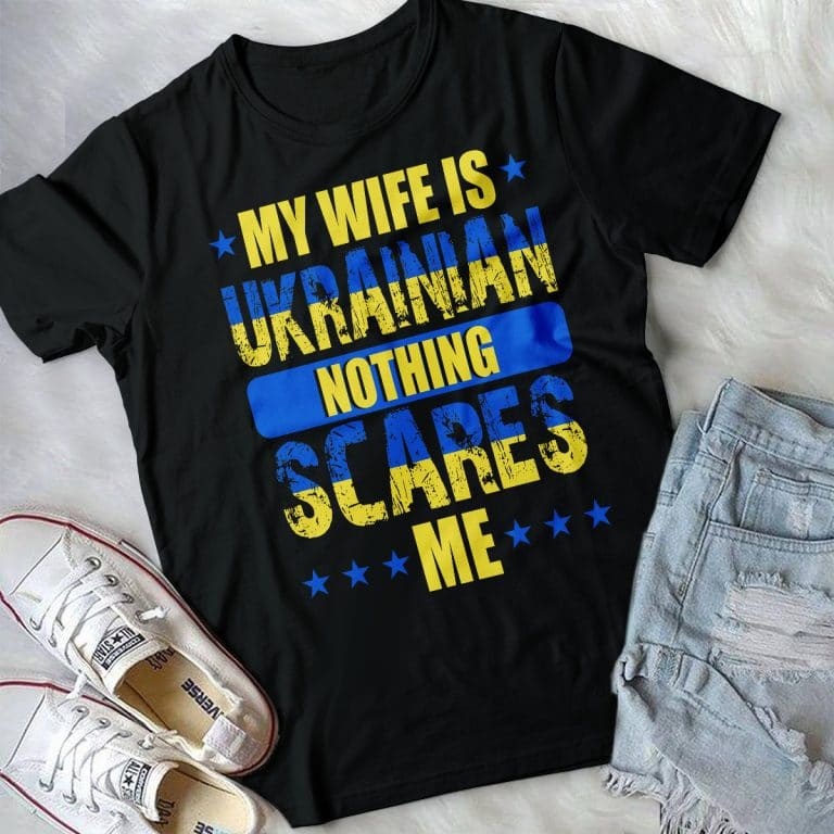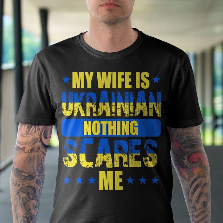 Let’s Shop My Wife Is Ukrainian Nothing Scares Me T-Shirt – I Stand With Ukraine Shirt!