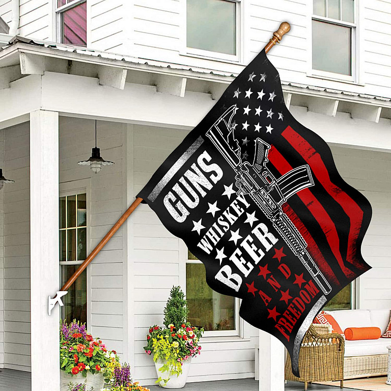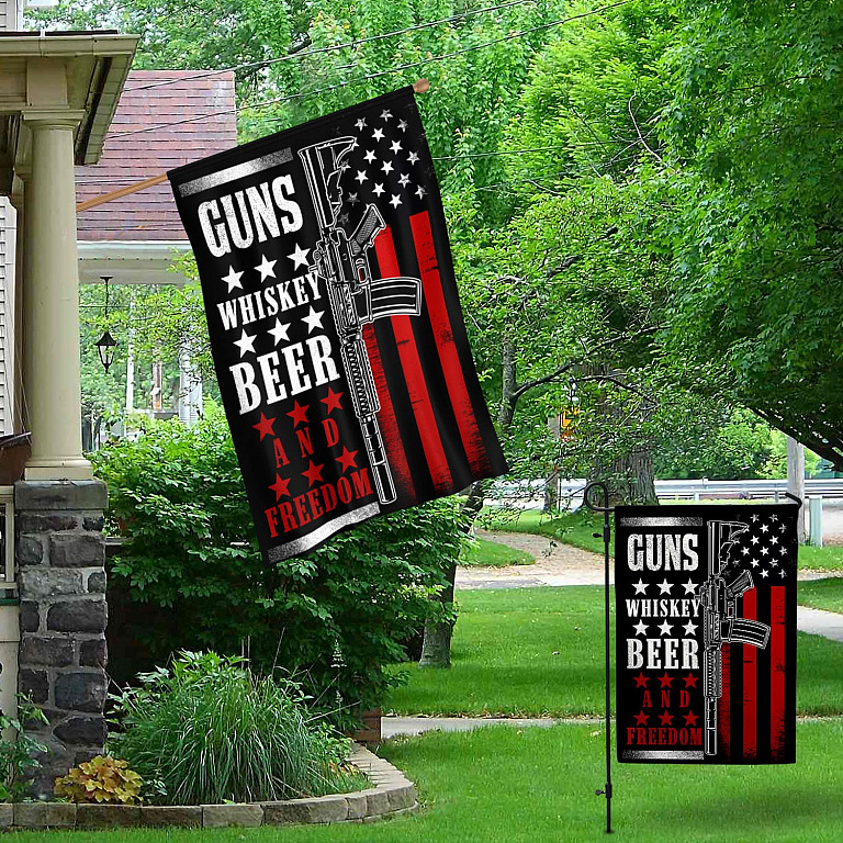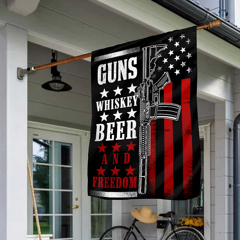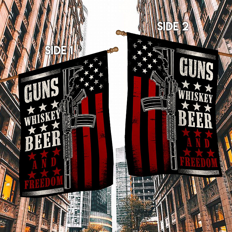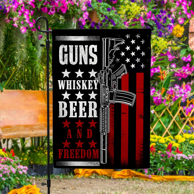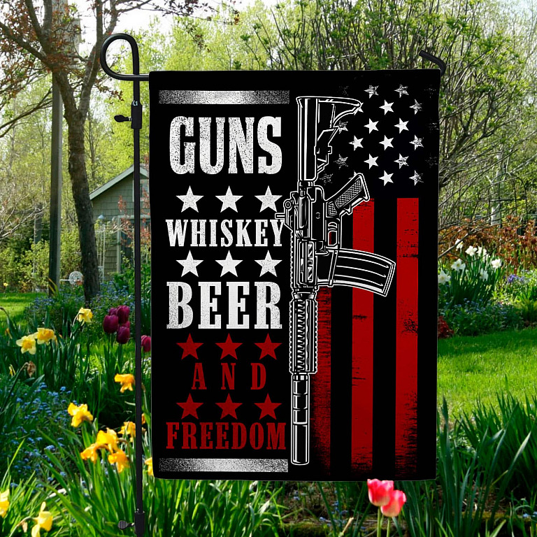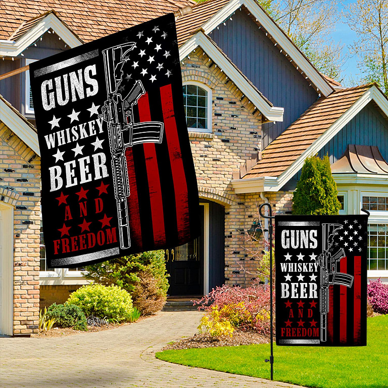 Let’s Shop Guns Whiskey Beer And Freedom Outdoor American Garden Flag – House Flag – Wall Flag!