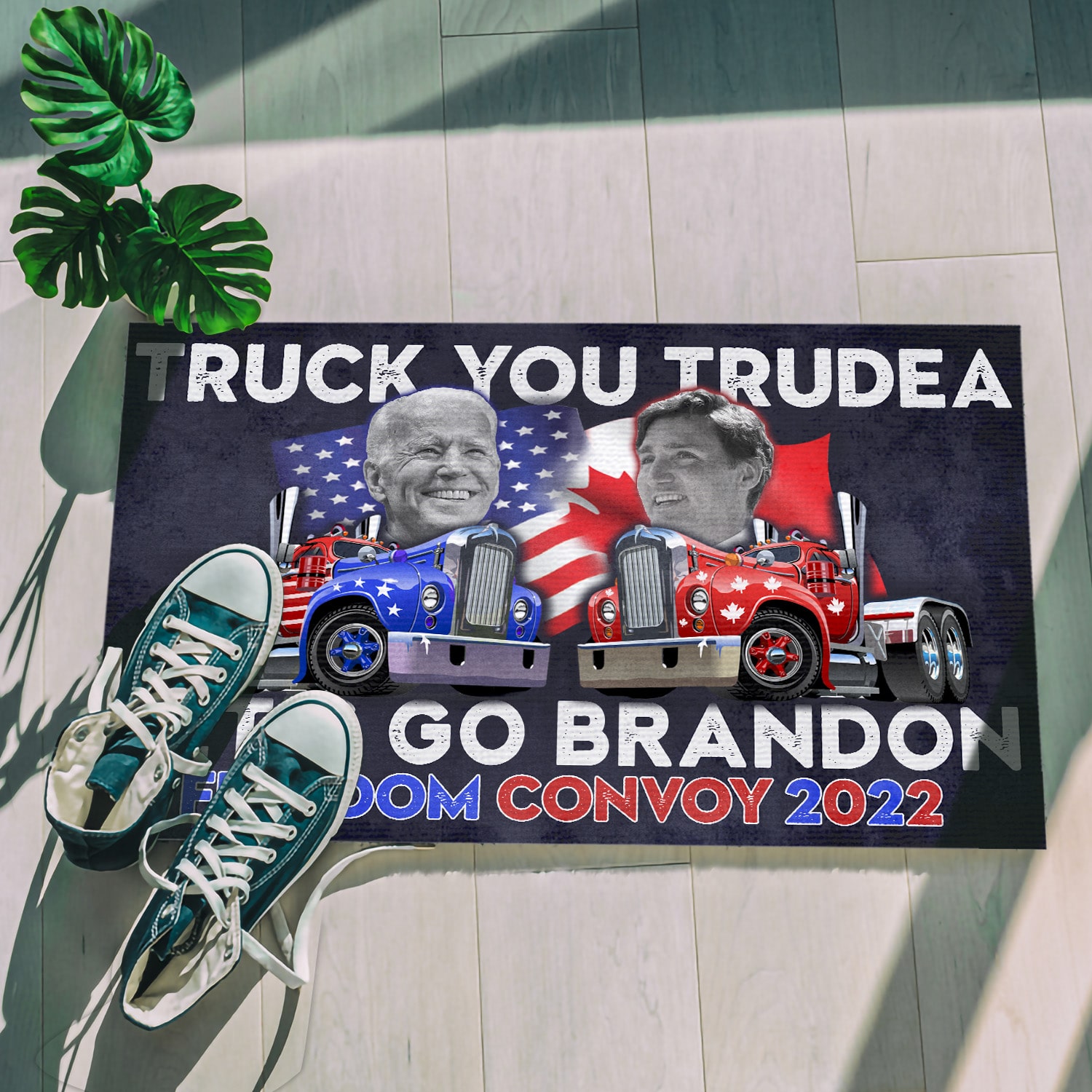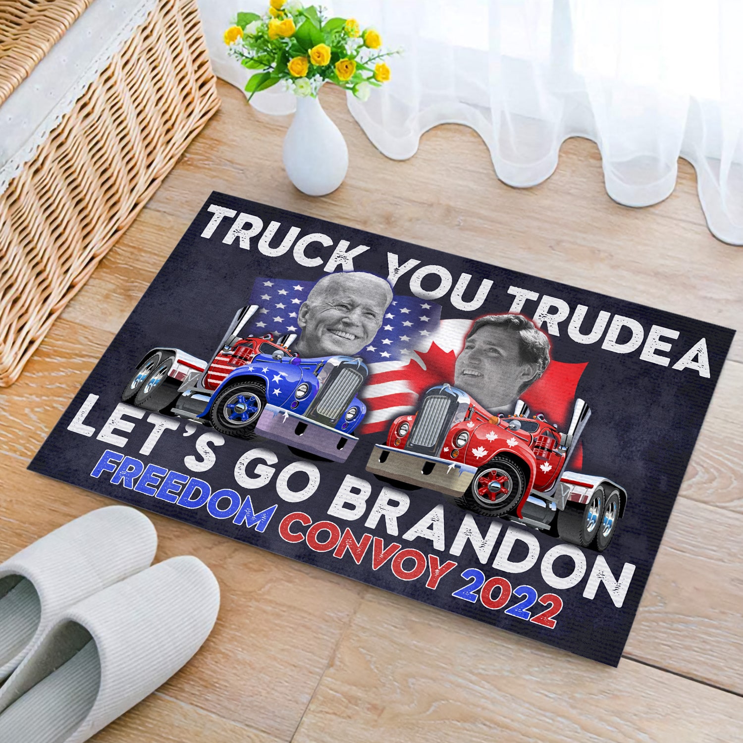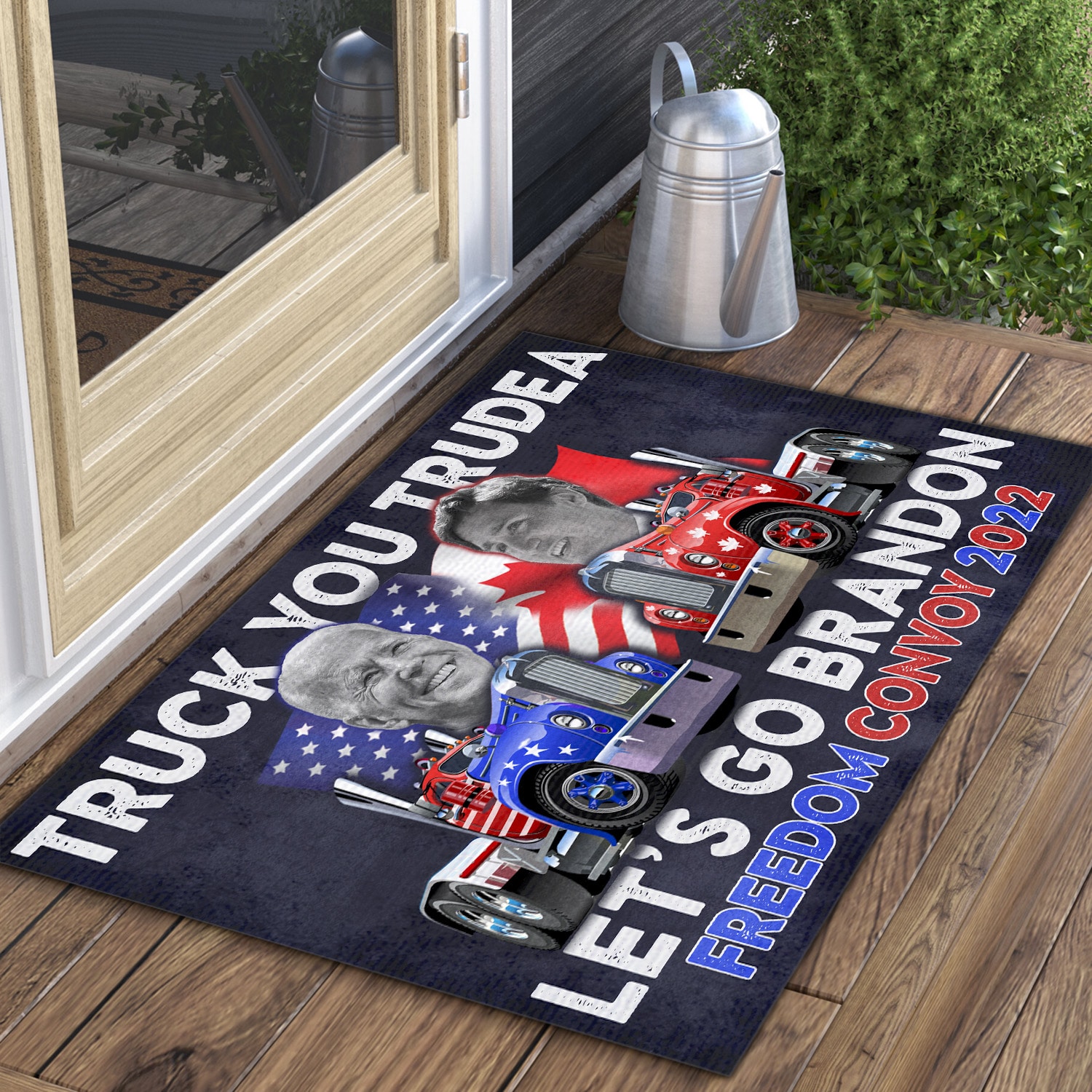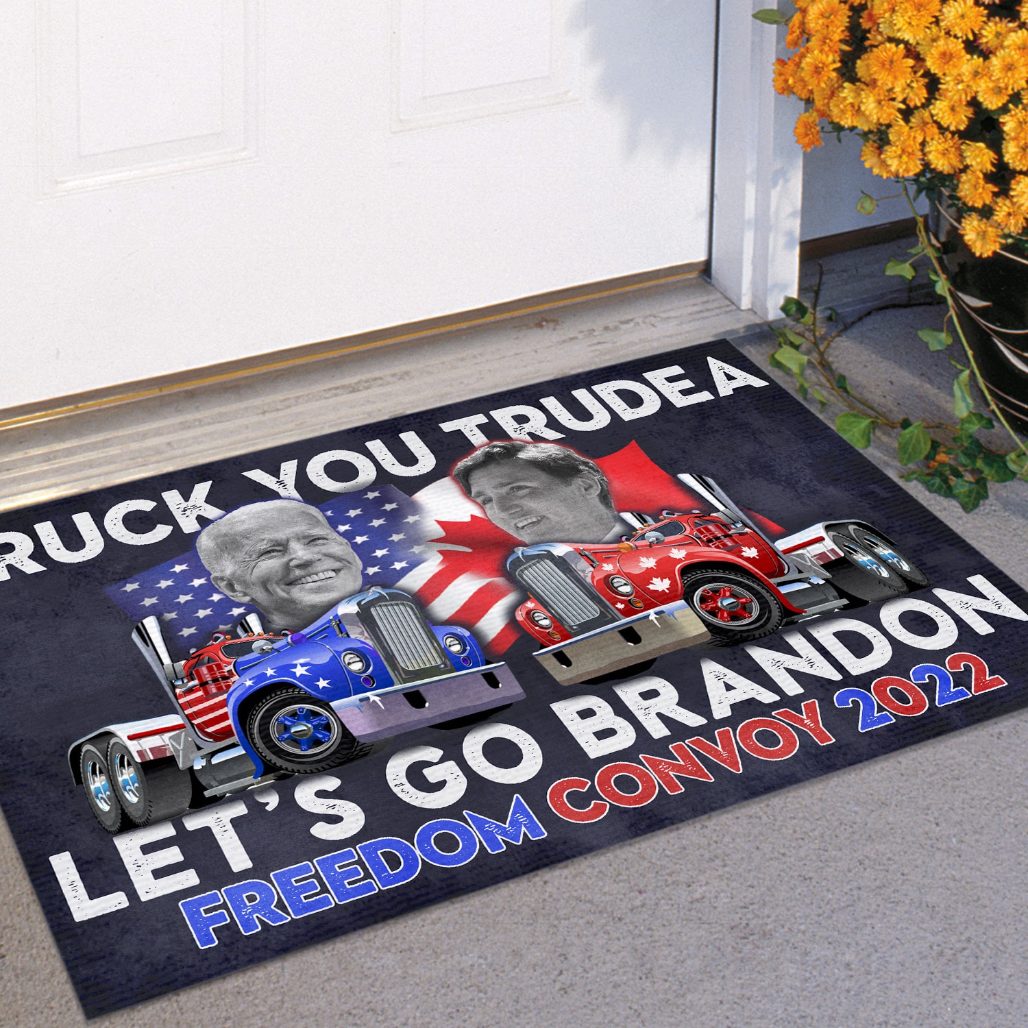 Let’s Shop Truck You Trudeau Lets Go Brandon Freedom Convoy 2022 Canada Truckers Anti Biden And Trudeau Entrance Indoor Outdoor Decorative Doormat!